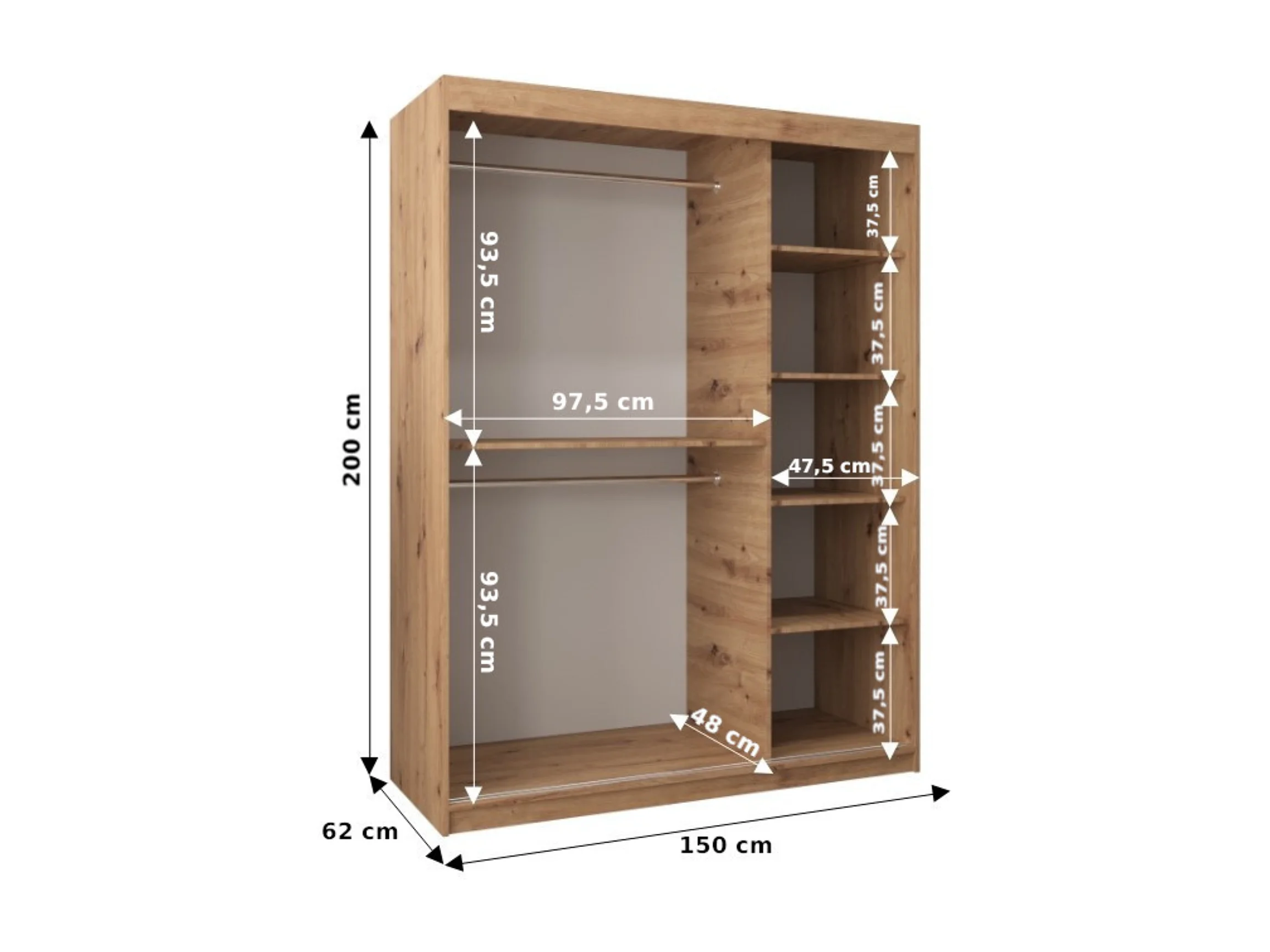 Armoire à portes coulissantes Marmur T2 200/150/62 (Blanc)