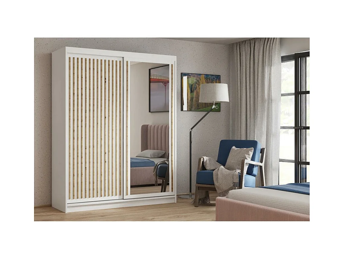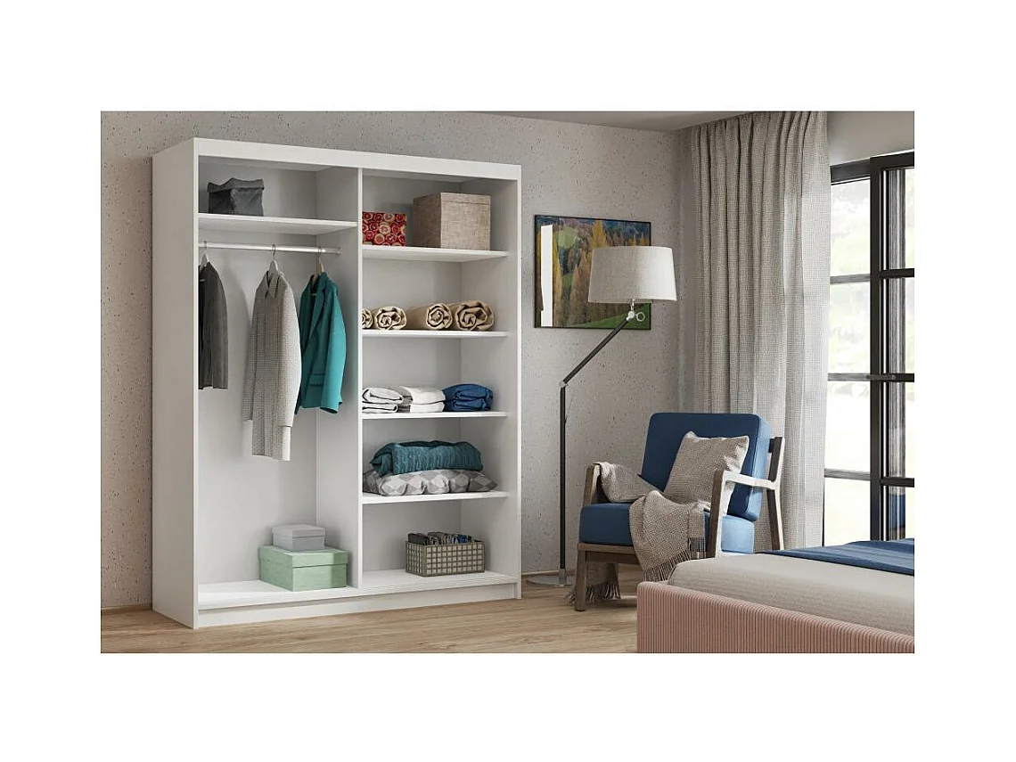 ARMOIRE A PORTES FERMÉES Hela 160/205/60 2 portes blanc avec miroir