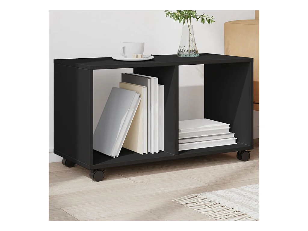 Armoire à roulettes noir 72x33x42,5 cm bois d'ingénierie