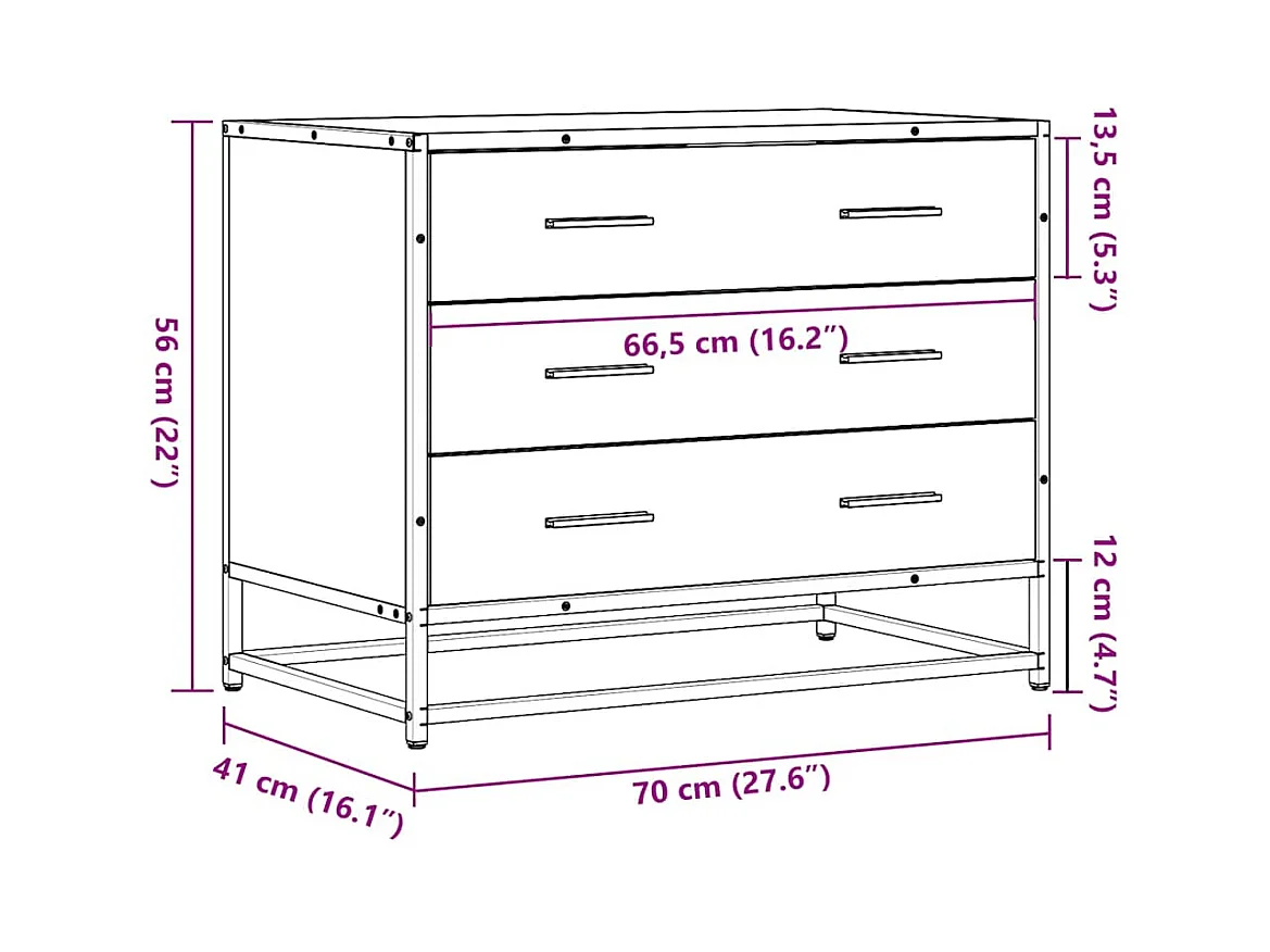Armoire à tiroirs noir 70x41x56 cm bois d'ingénierie