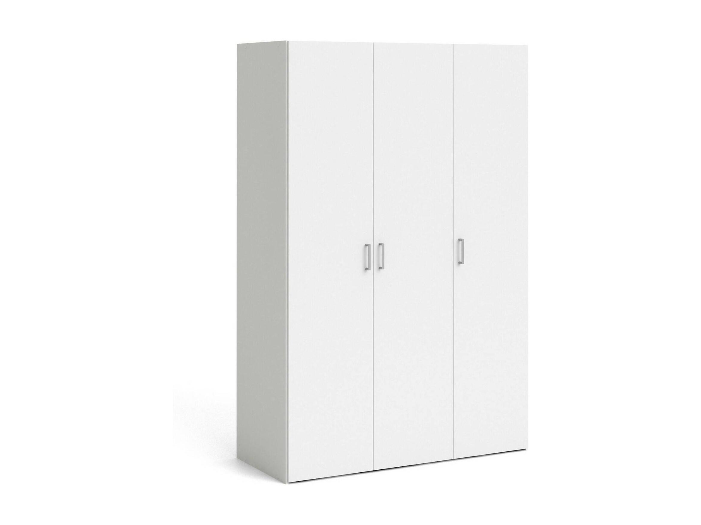 Armoire à trois portes battantes avec quatre étagères internes et tringle à vêtements, couleur blanche, Dimensions 115 x 175 x 49 cm