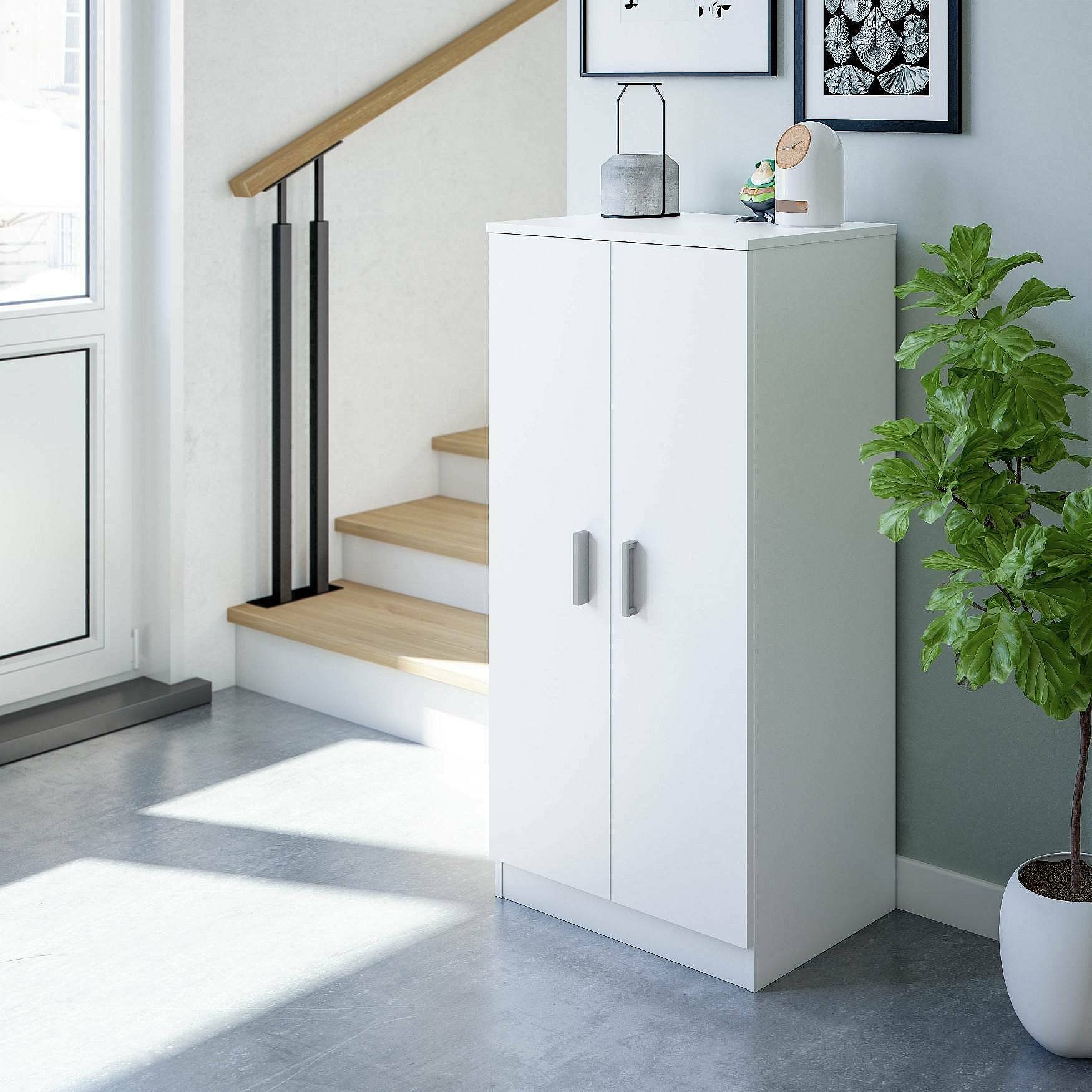 Armoire polyvalente Dbonucc, Armoire auxiliaire avec 2 portes, Armoire à chaussures basse avec 6 étagères, Étagère à chaussures moderne, 55x36h108 cm, Blanc
