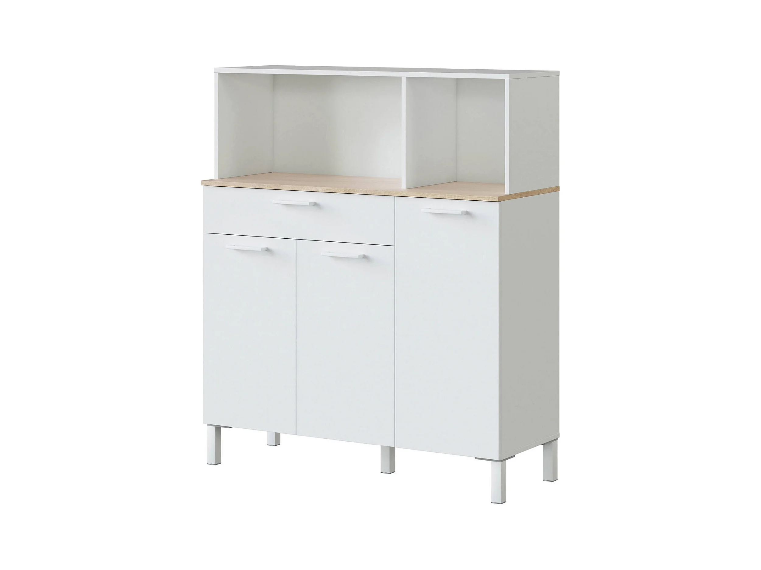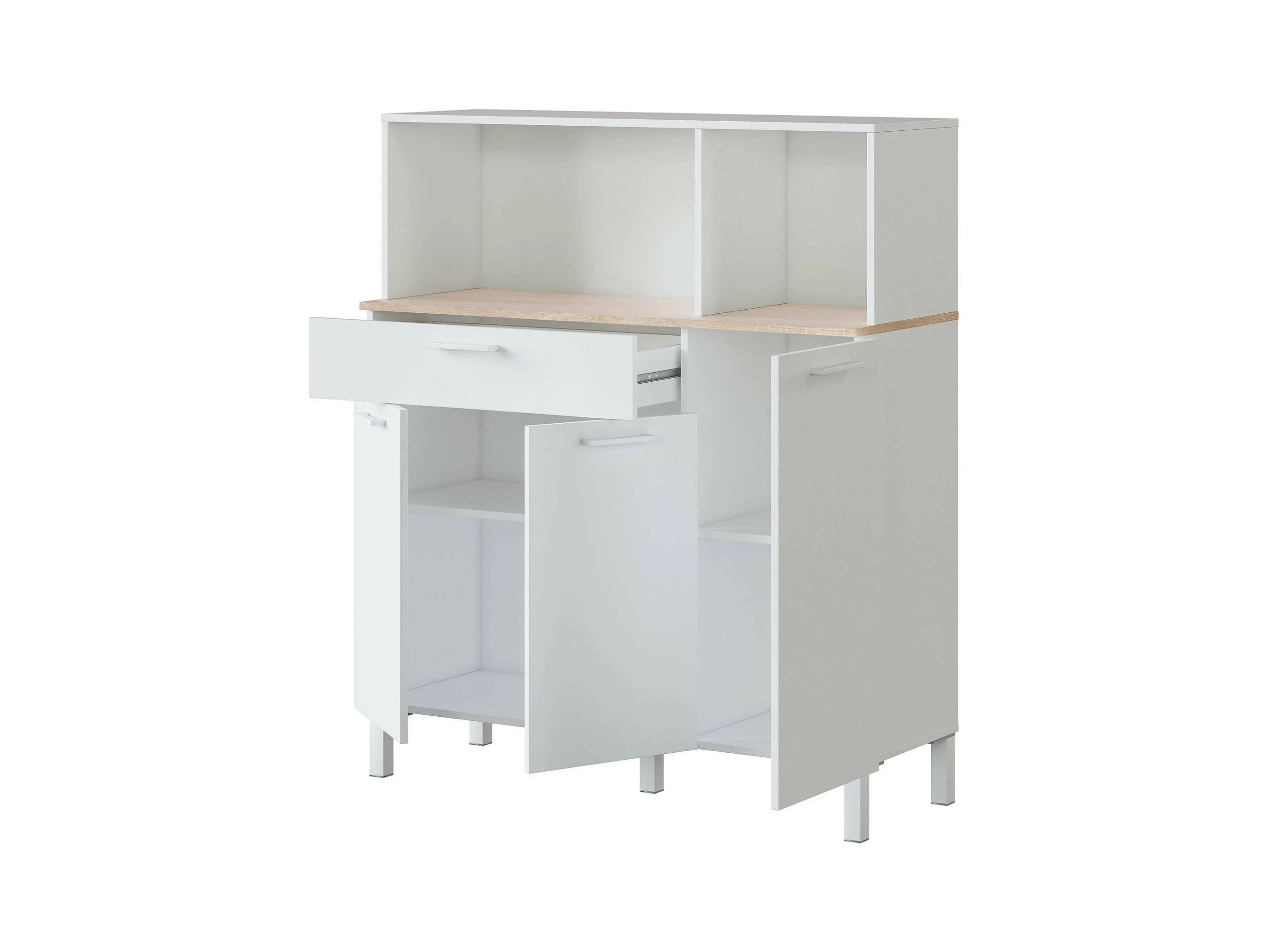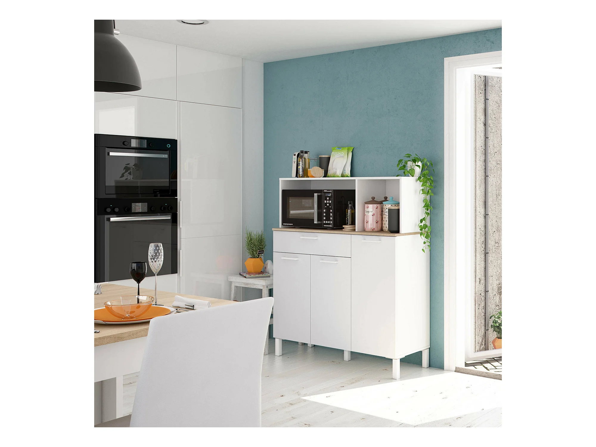 Armoire polyvalente Norfolk, Armoire de cuisine auxiliaire, Buffet avec 3 portes et 1 tiroir avec étagères, Armoire ouverte, 108x40h126 cm, Blanc et Chêne