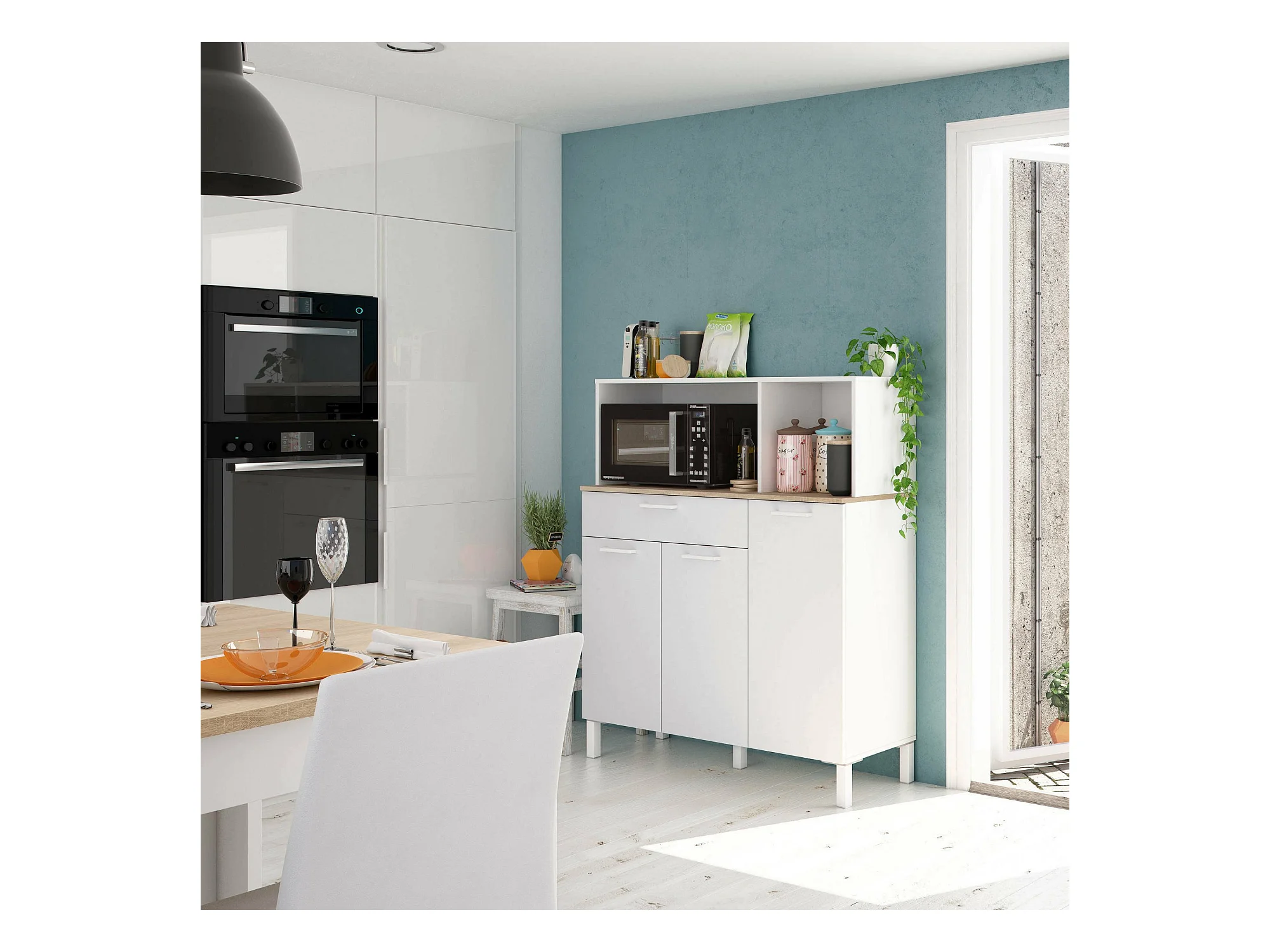 Armoire polyvalente Dlarin, Armoire de cuisine auxiliaire, Buffet avec 3 portes et 1 tiroir avec étagères, Armoire ouverte, 108x40h126 cm, Blanc et Chêne