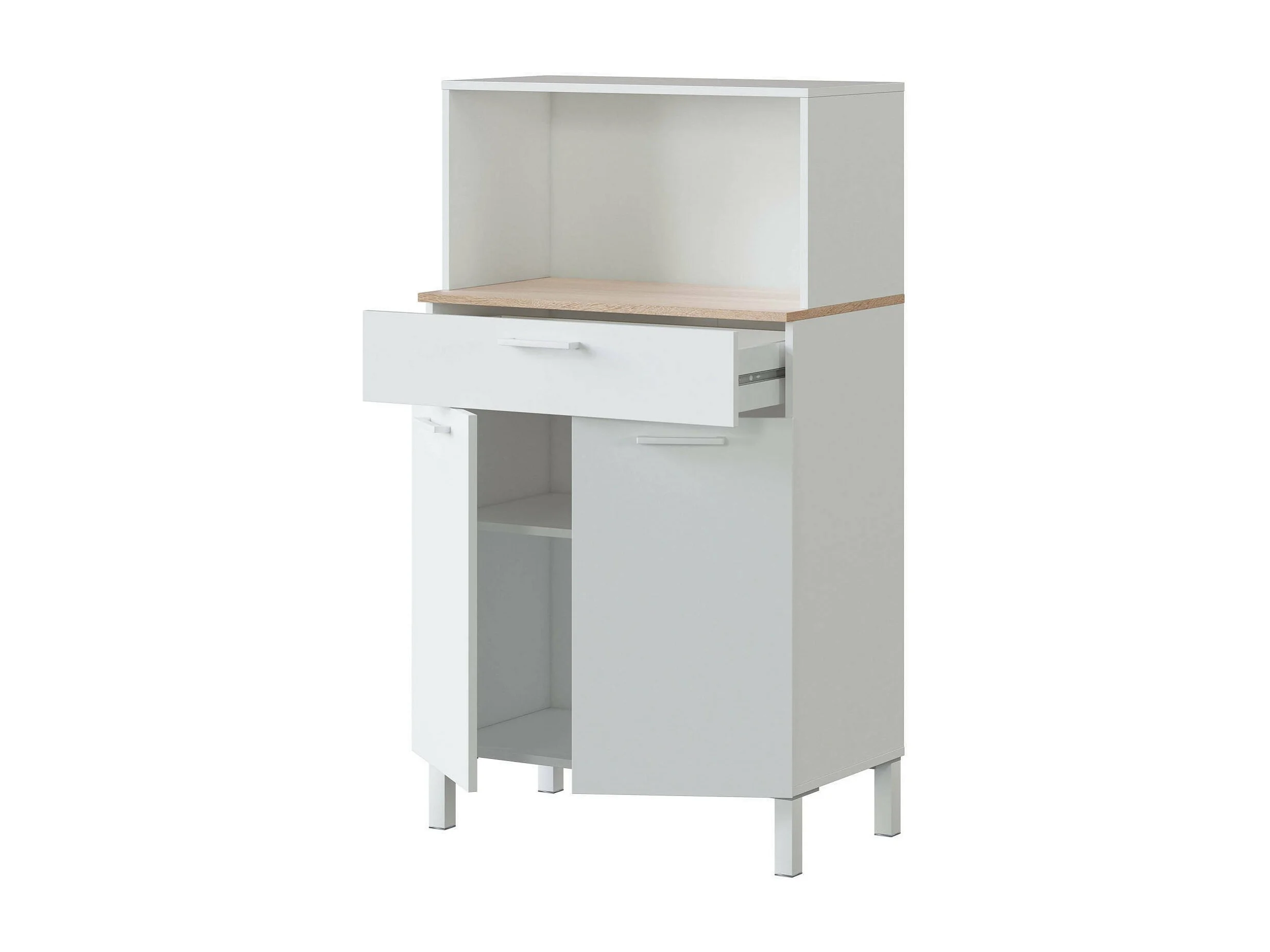 Armoire polyvalente normande, buffet de cuisine 2 portes, armoire auxiliaire polyvalente, armoire moderne, 72x40h126 cm, blanc et chêne