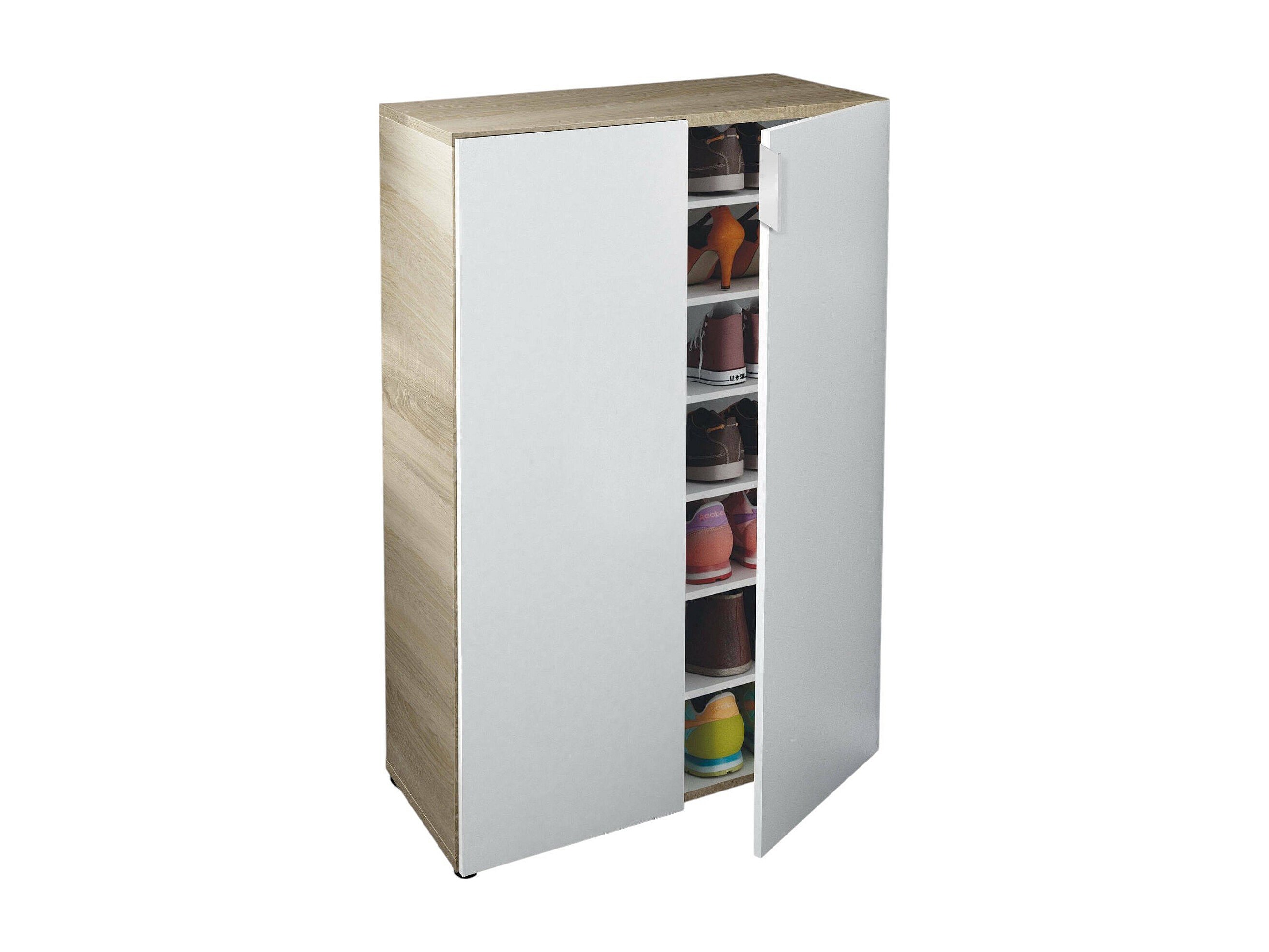 Armoire polyvalente Dlel, Armoire auxiliaire avec 2 portes, Armoire à chaussures basse avec 6 étagères, Étagère à chaussures basse, 70x36h103 cm, Chêne et Blanc