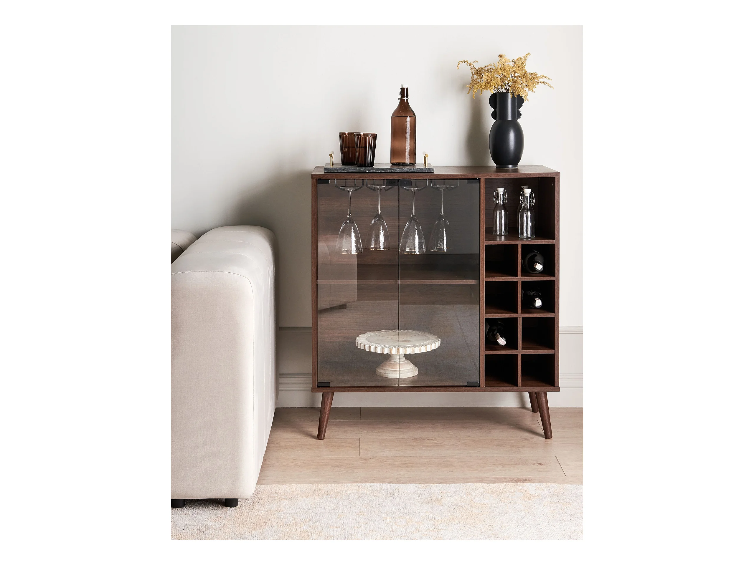 Étagère à vin 22 bouteilles, 2 casiers à vin et 4 porte-verres, marron rustique
