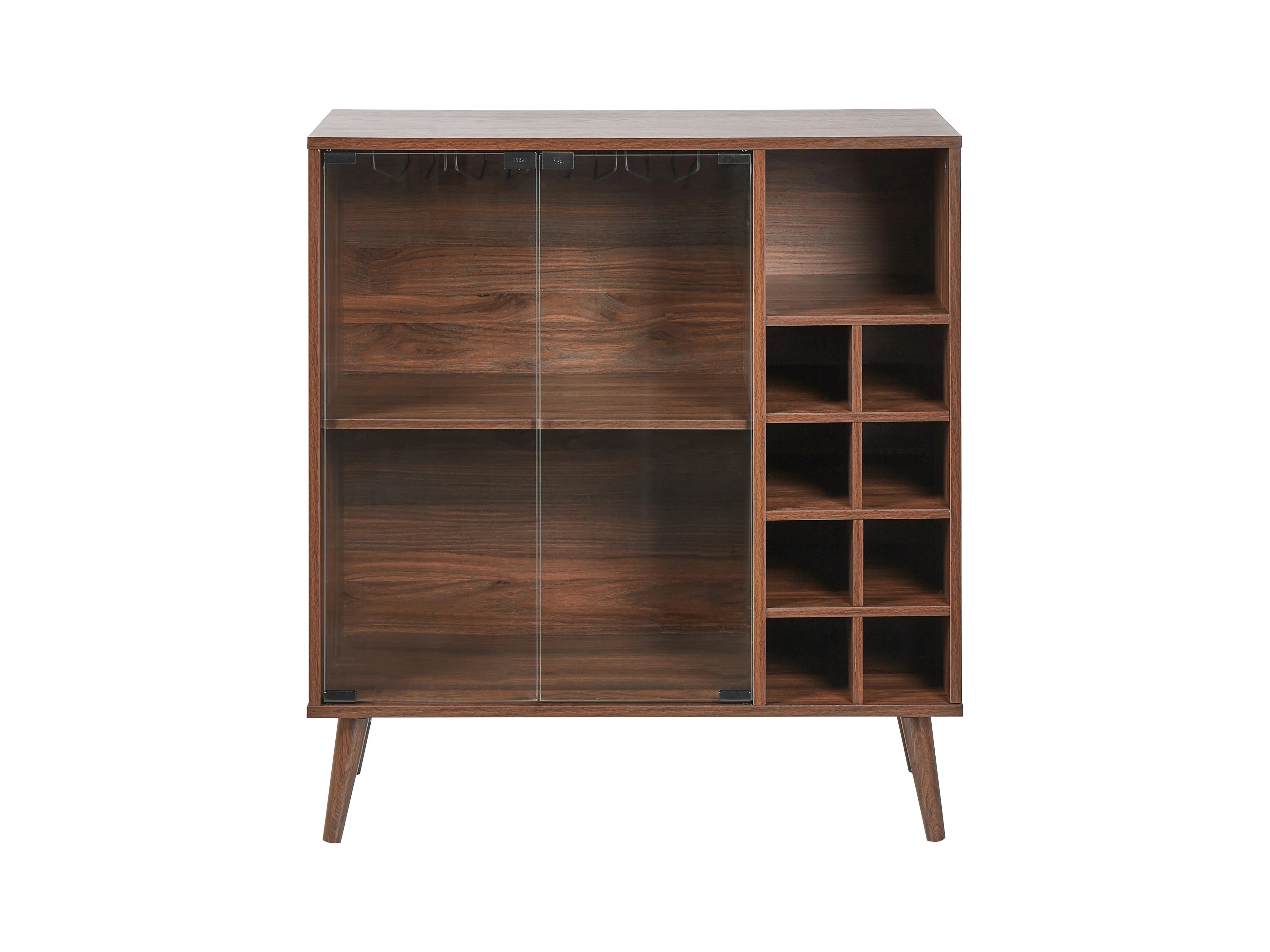 Bar à vin industriel, étagère à vin 21 bouteilles, supports en verre, marron rustique