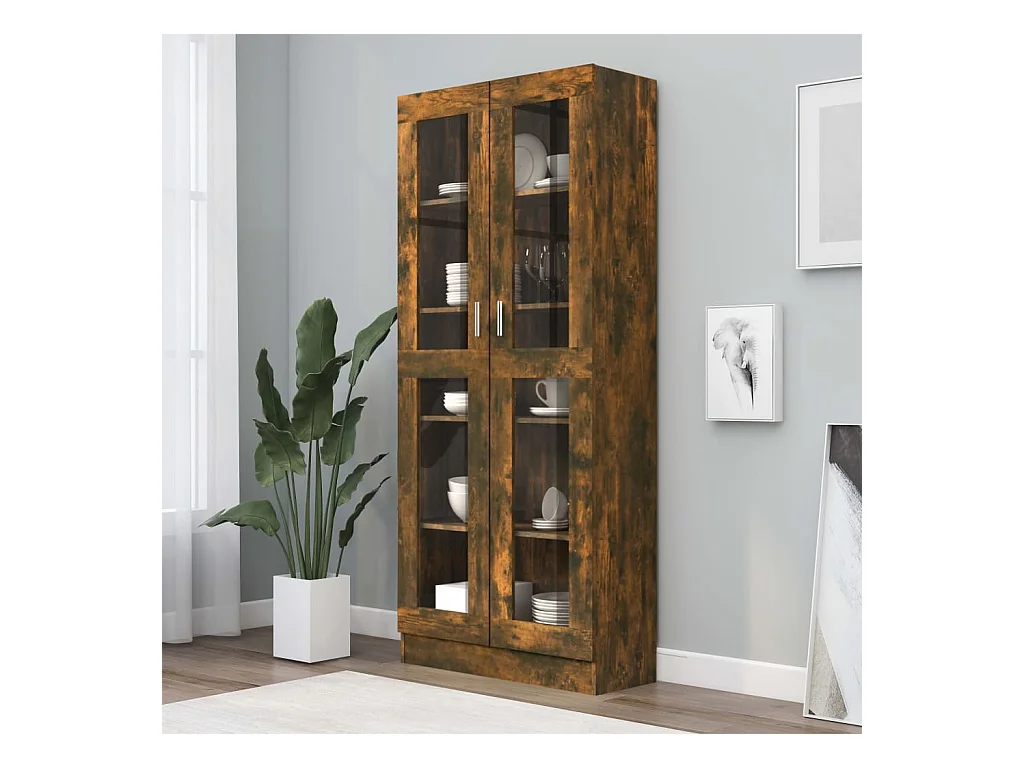 Armoire à vitrine Chêne fumé 82,5x30,5x185,5 cm Bois ingénierie FR59855