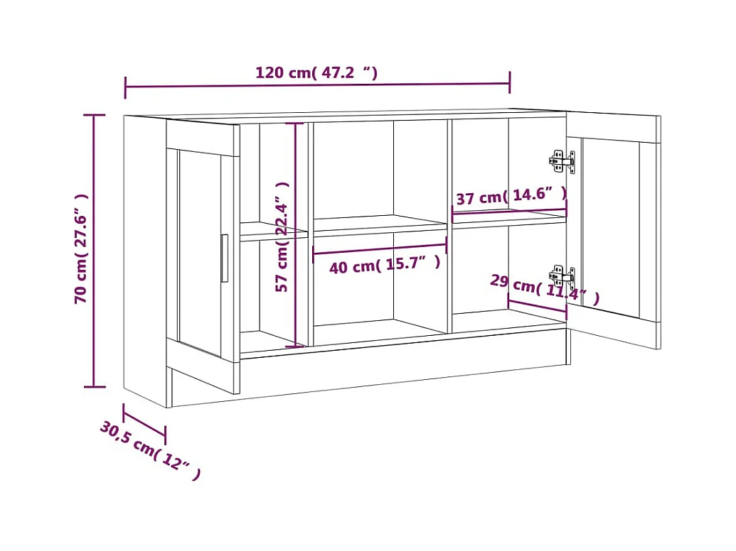 Buffet Chêne fumé 120x30,5x70 cm Bois d'ingénierie