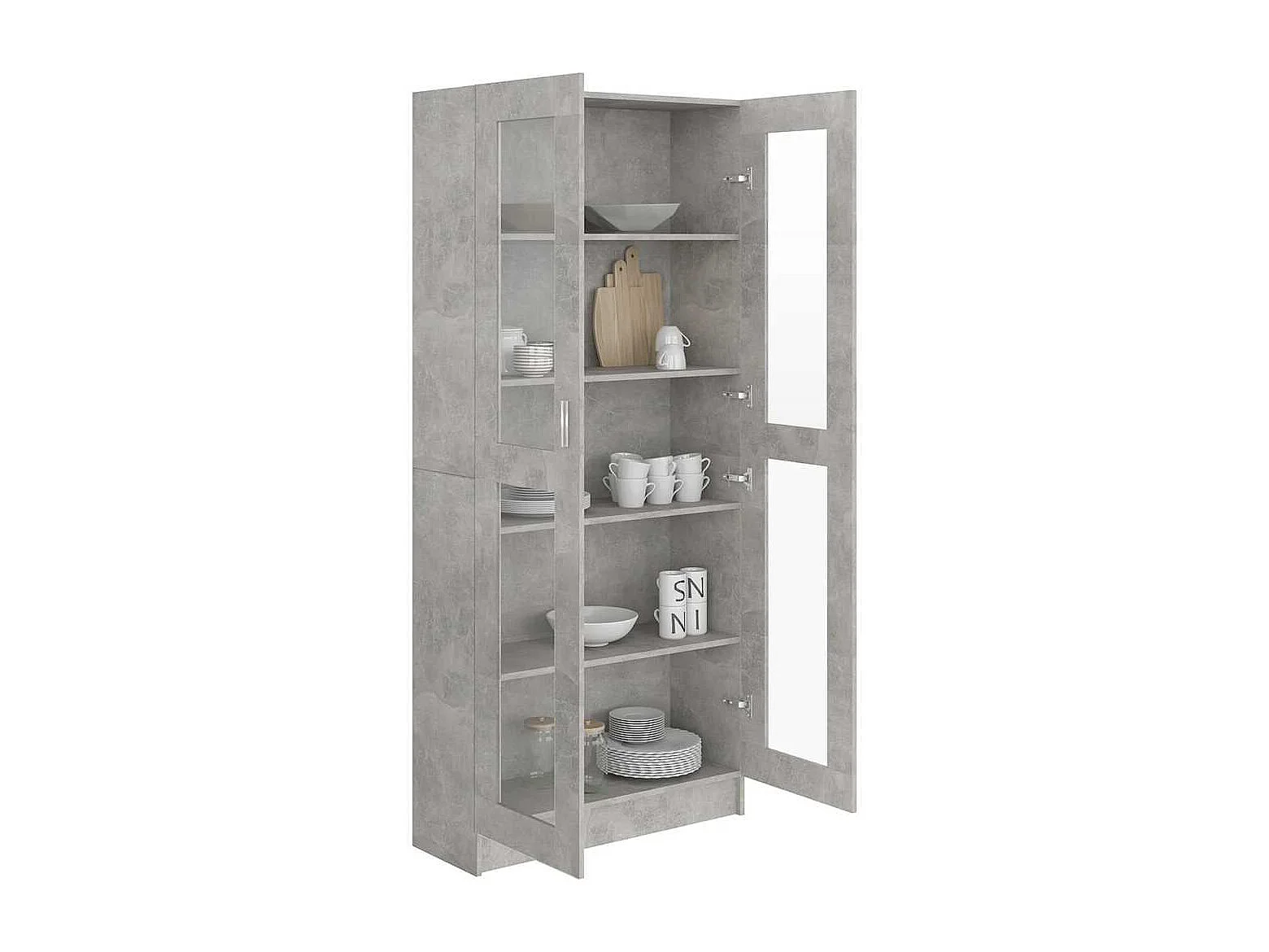 Vitrine Gris béton 82,5x30,5x185,5 cm Aggloméré OFR48870 BonneVie Meuble
