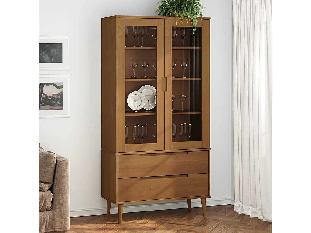 Armoire à vitrine MOLDE Marron 90x35x175 cm Bois de pin massif
