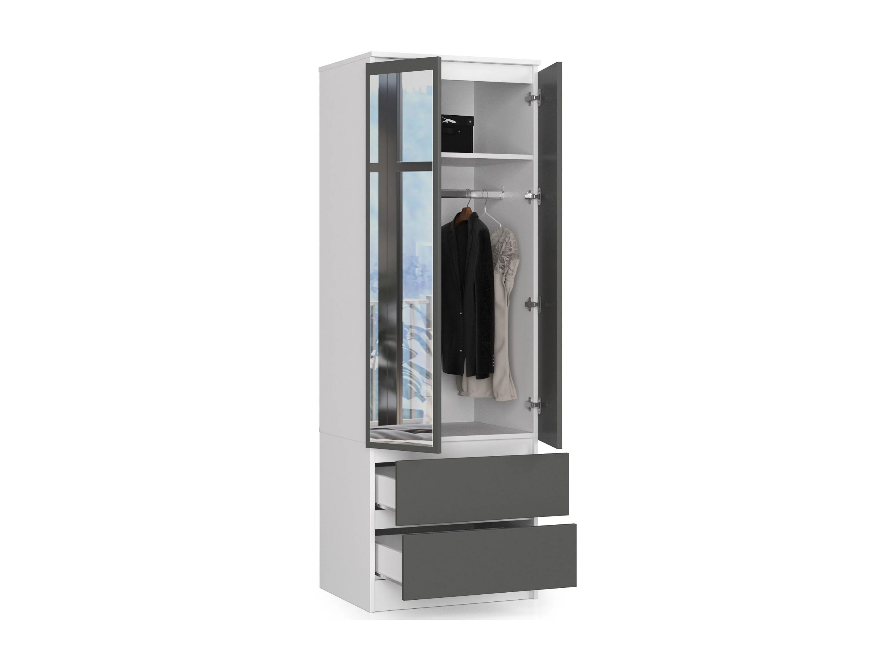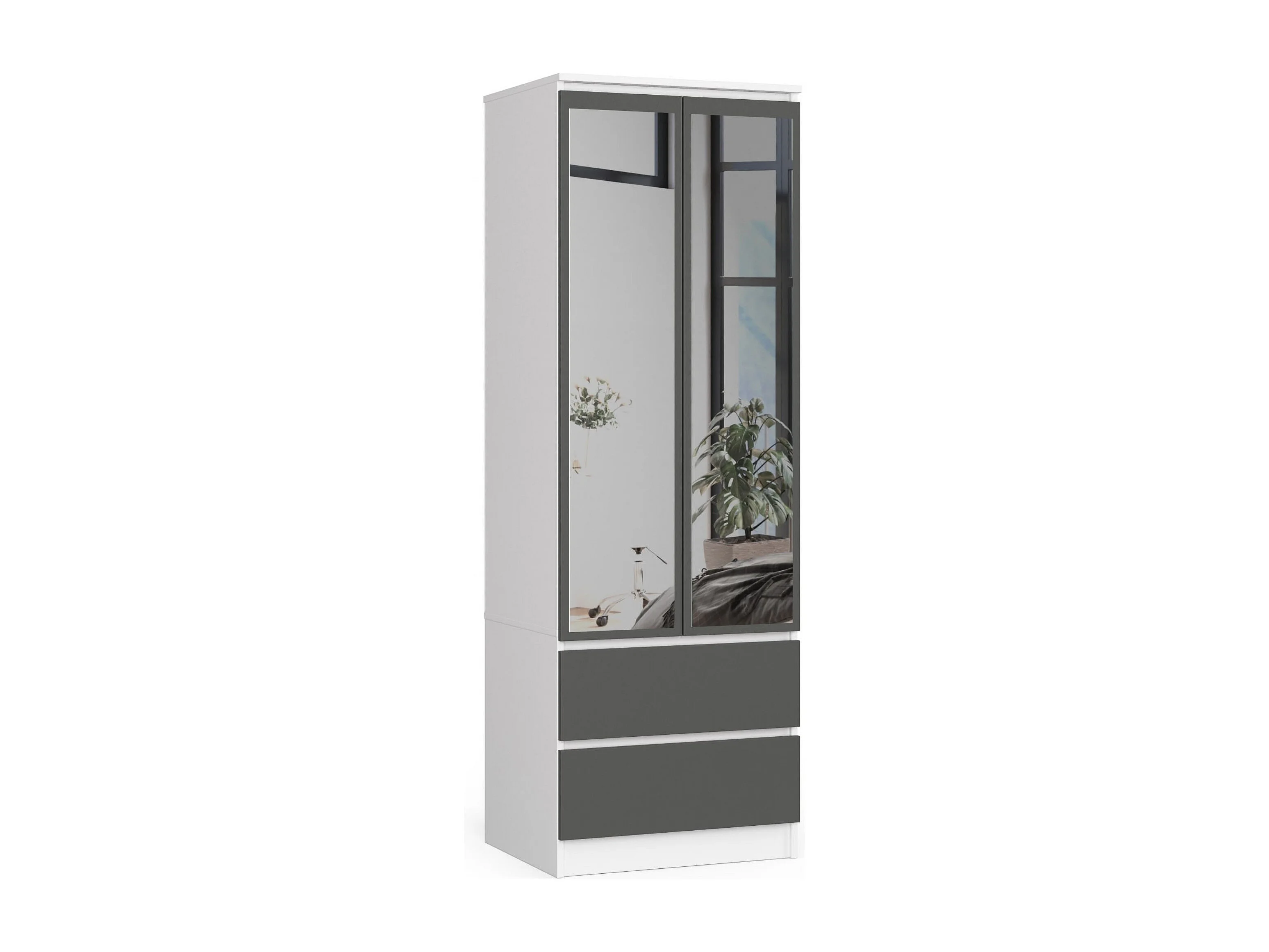 Armoire AKORD S60 avec miroir Blanche 60 cm 2 portes 2 tiroirs façade Gris Graphite 1 étagère 60x51x180 cm