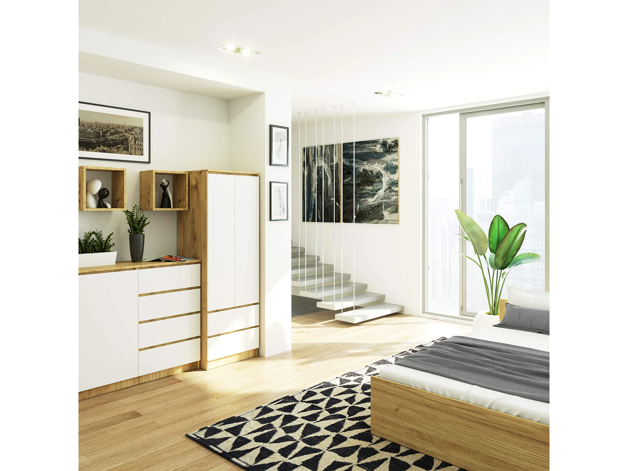 Armoire AKORD S60 Chêne Artisan 60 cm 2 portes 2 tiroirs façade Blanche 1 étagère 60x51x180 cm