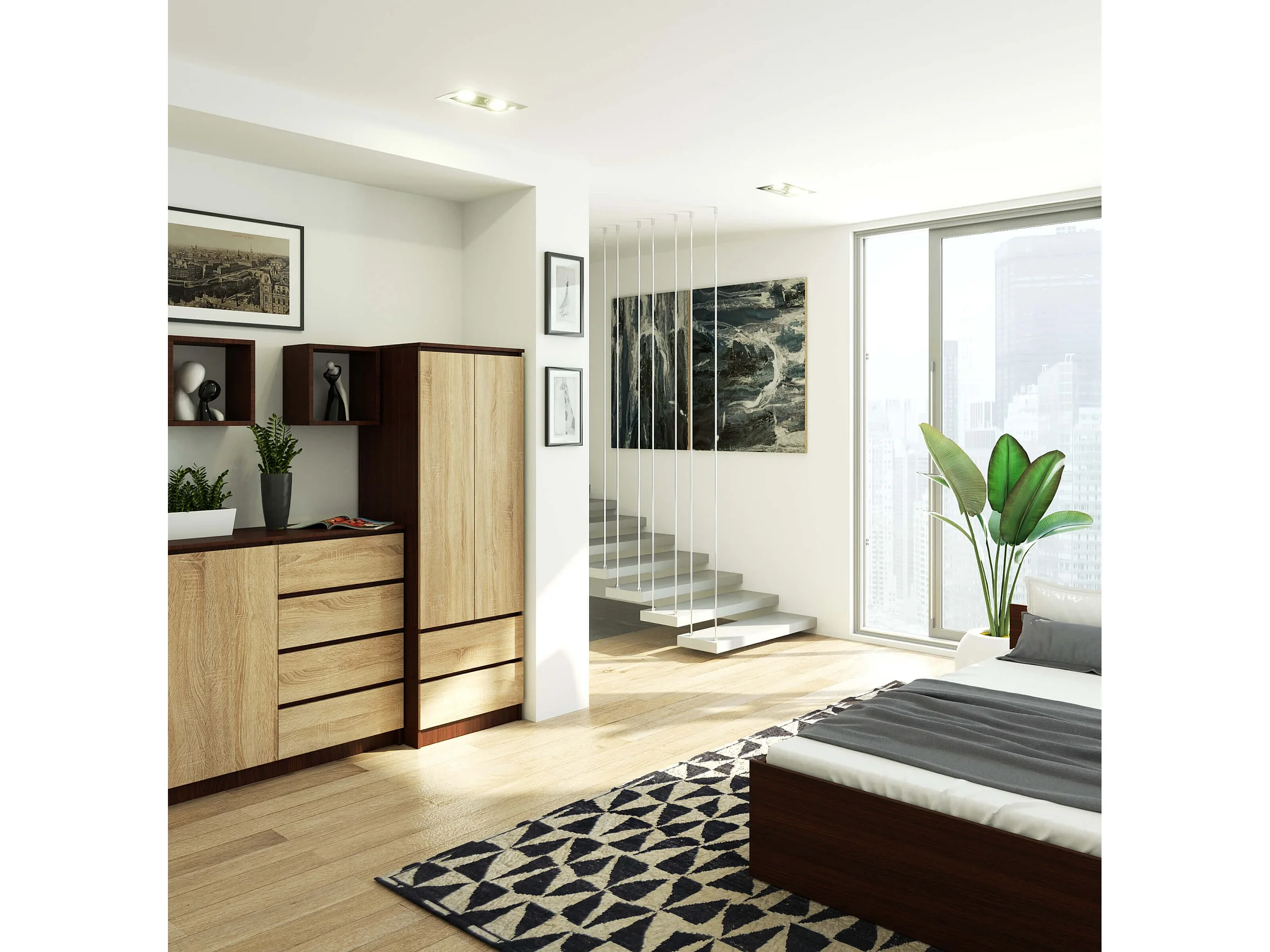 Armoire AKORD S60 Wengé 60 cm 2 portes 2 tiroirs façade Chêne Sonoma 1 étagère 60x51x180 cm