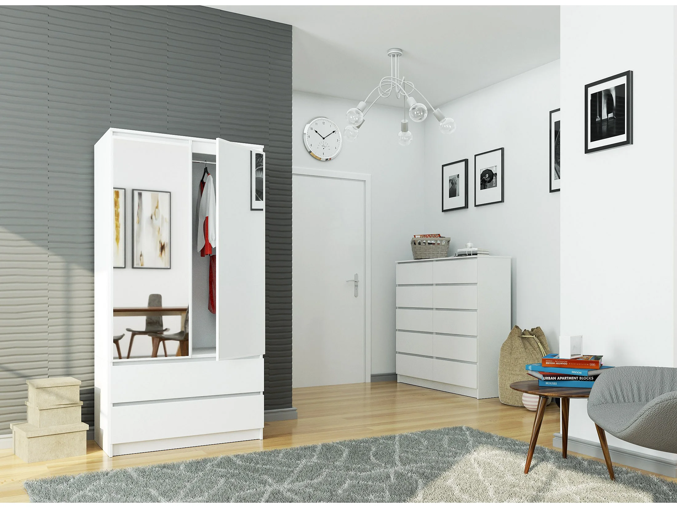 Armoire AKORD S90 avec miroir Blanche 90 cm 2 portes 2 tiroirs façade Blanche 4 étagères 90x51x180 cm