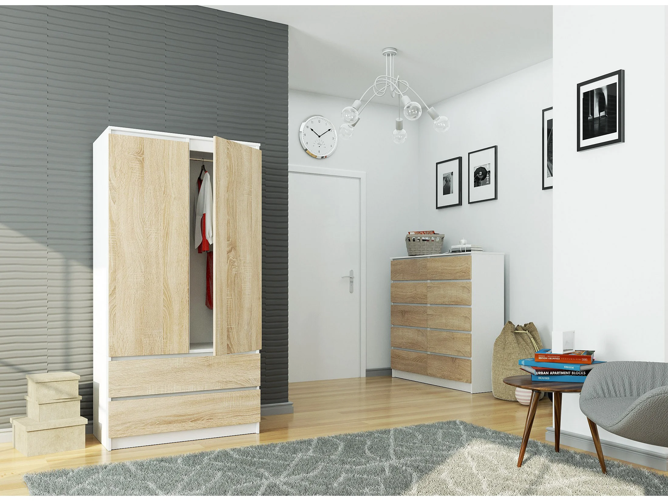 Armoire AKORD S90 Blanche 90 cm 2 portes 2 tiroirs façade Chêne Sonoma 4 étagères 90x51x180 cm