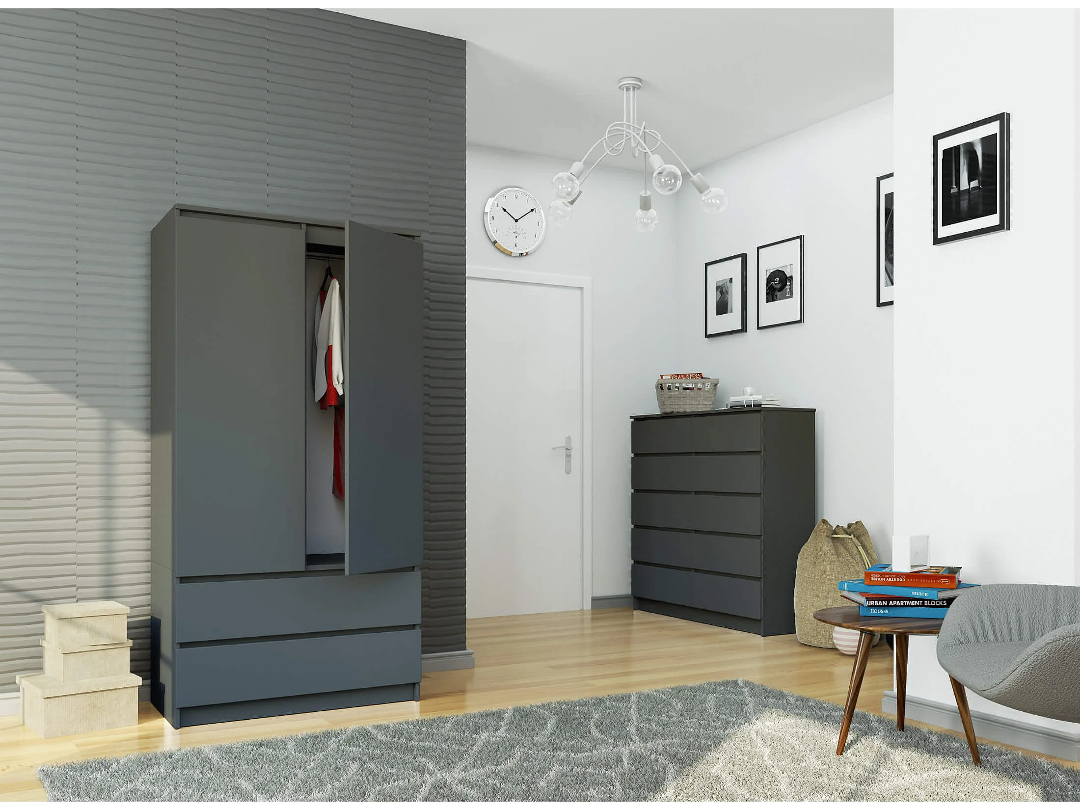 Armoire AKORD S90 Gris Graphite 90 cm 2 portes 2 tiroirs façade Gris Graphite 4 étagères 90x51x180 cm