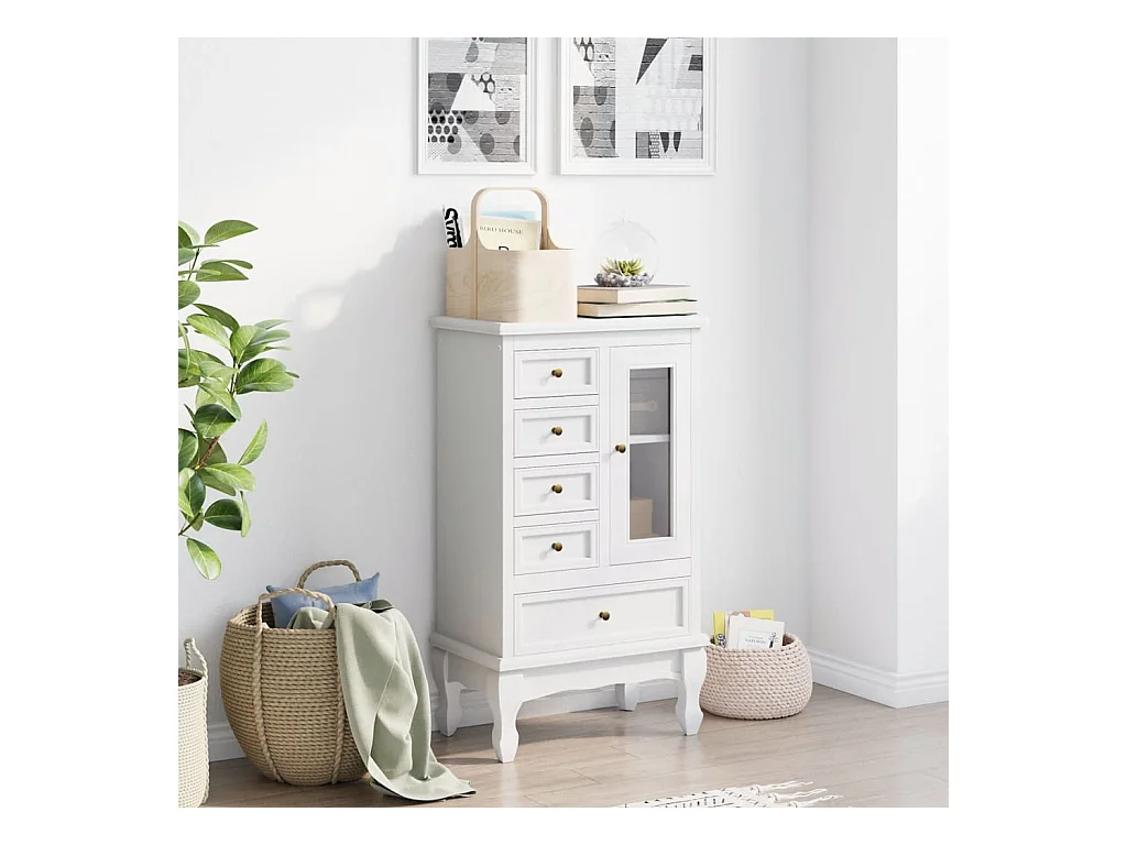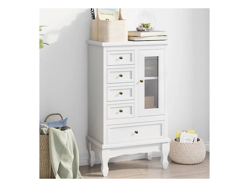Armoire avec 5 tiroirs et 2 étagères Blanc FR58215