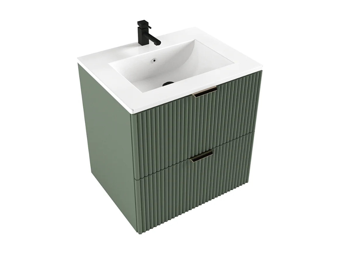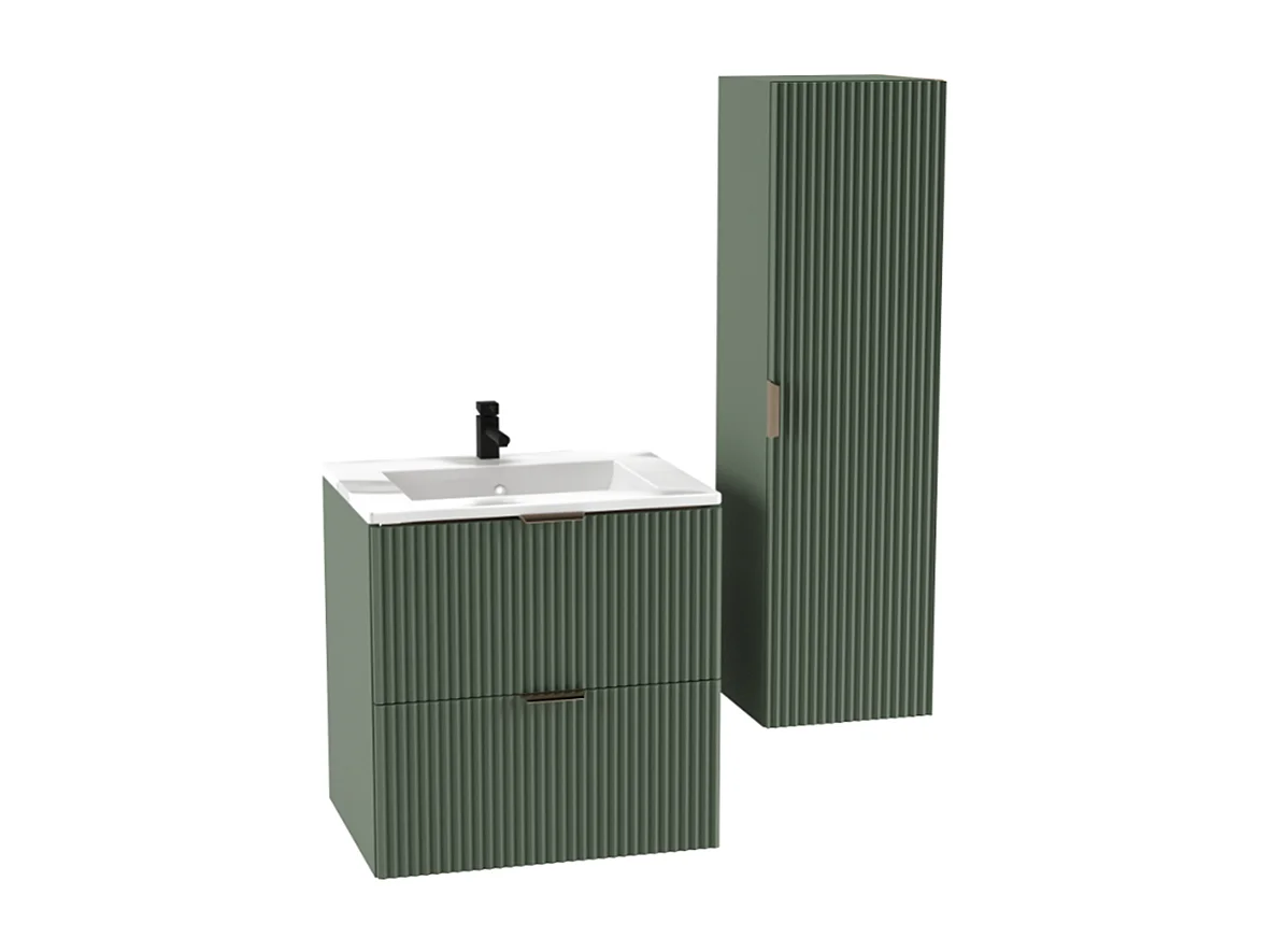 Armoire avec lavabo 60 cm Façades rainurées Vert / Sauge
