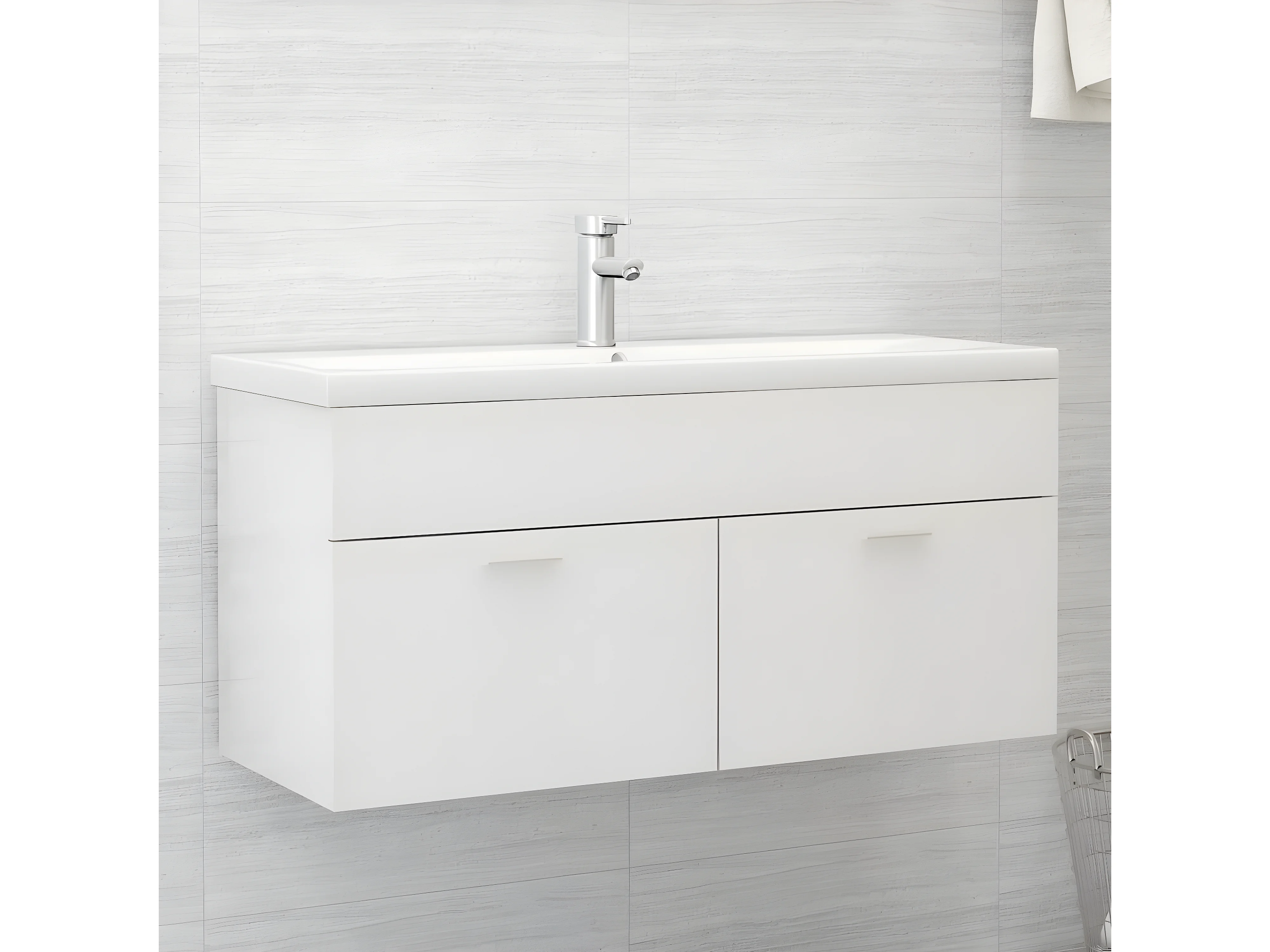 Armoire avec lavabo intégré Blanc brillant Aggloméré FR23243