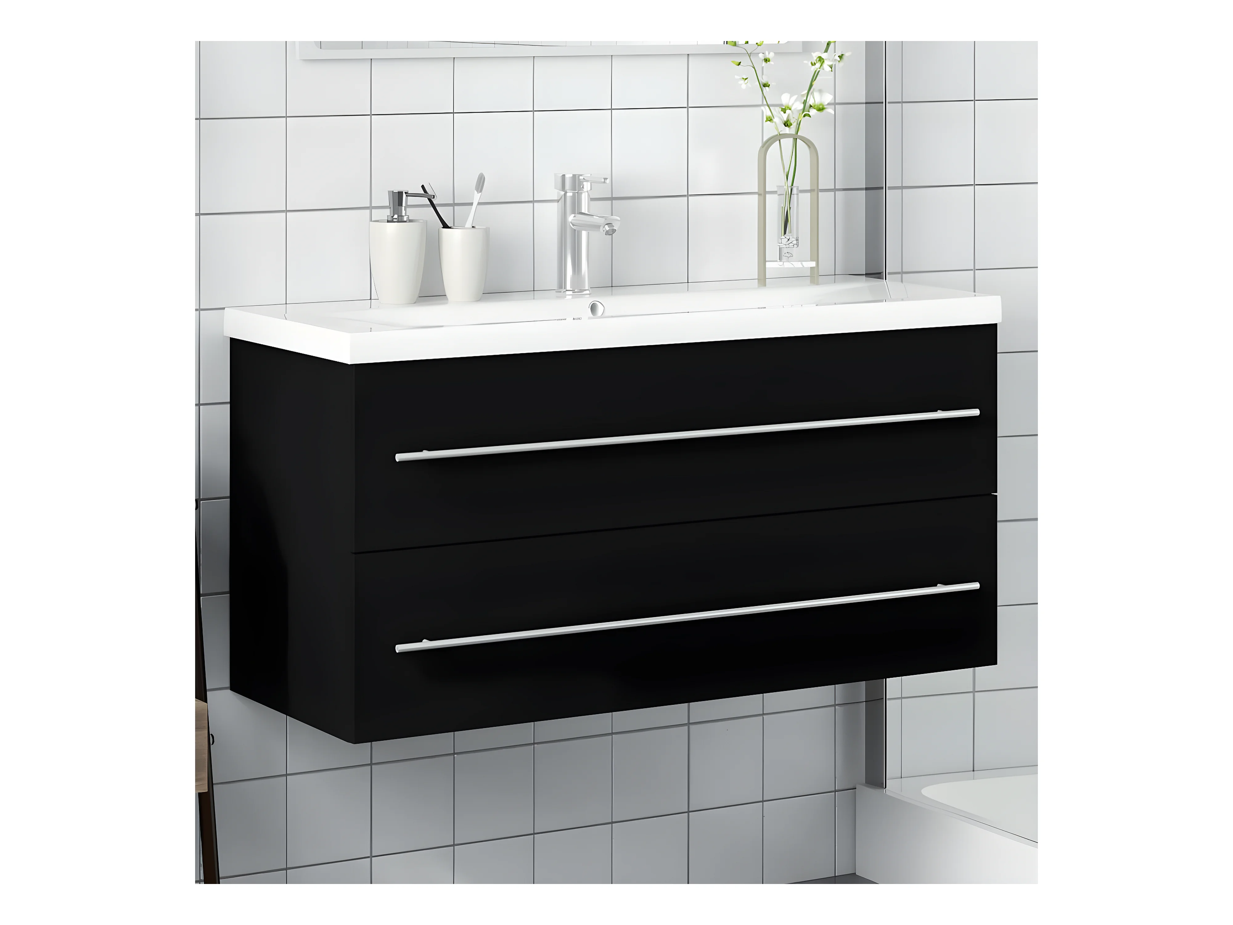 Ensemble de meubles salle de bain 2 pcs noir bois d'ingénierie