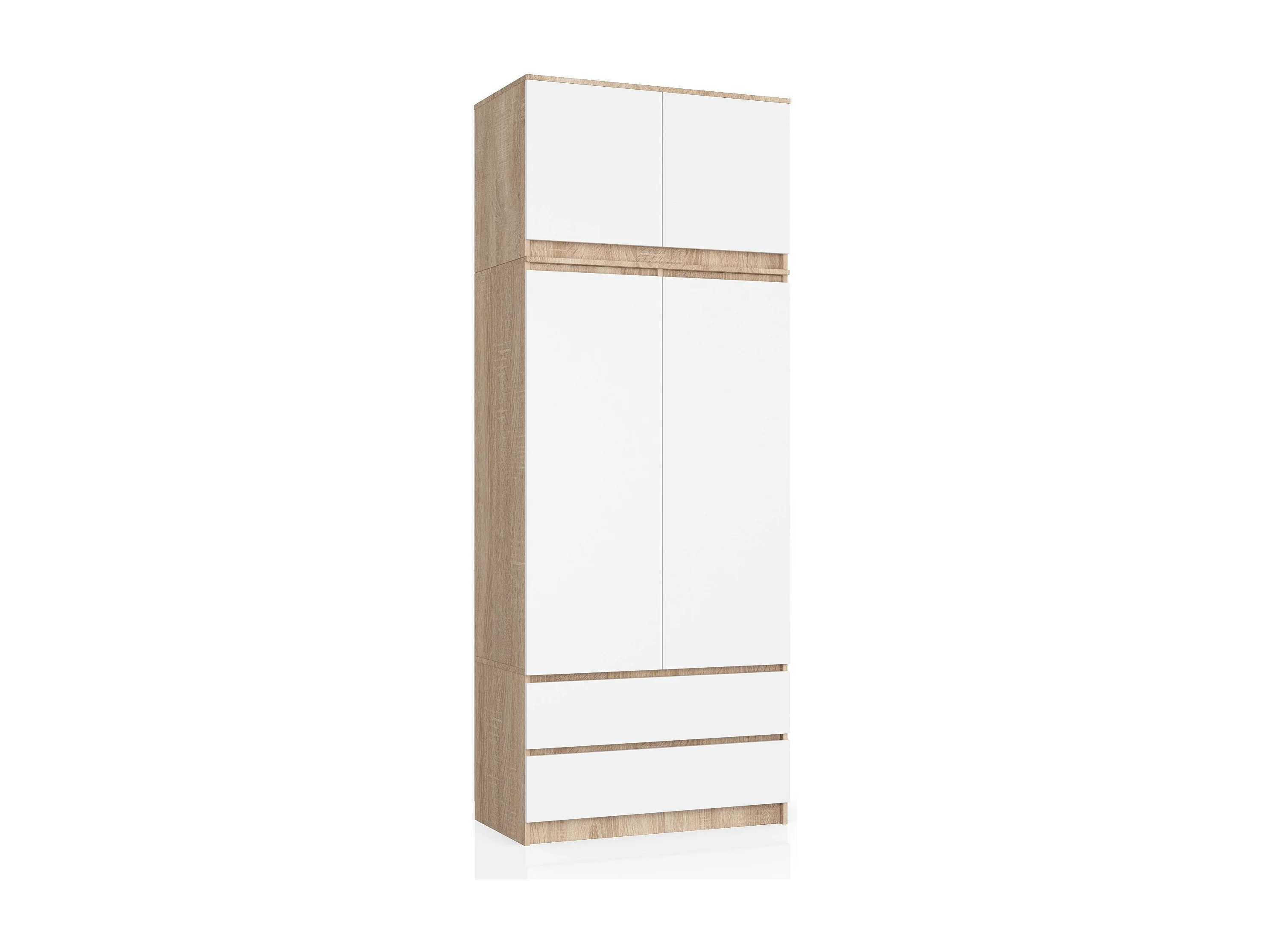 Armoire avec surmeuble AKORD S90 Chêne Sonoma 90 cm 2 portes 2 tiroirs façade Blanche 6 étagères 90x51x234 cm