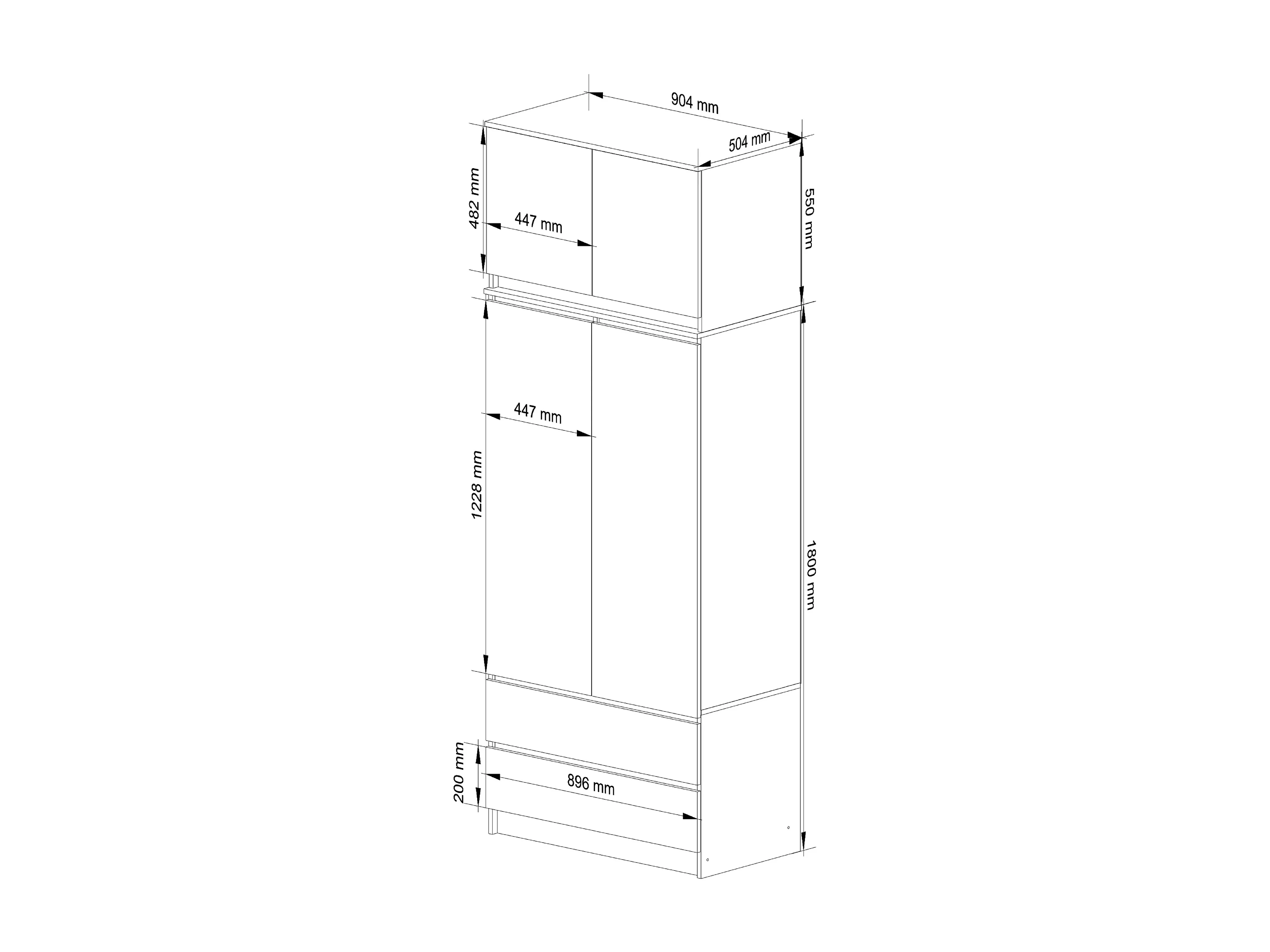 Armoire avec surmeuble AKORD S90 Wengé 90 cm 2 portes 2 tiroirs façade Chêne Sonoma 6 étagères 90x51x234 cm
