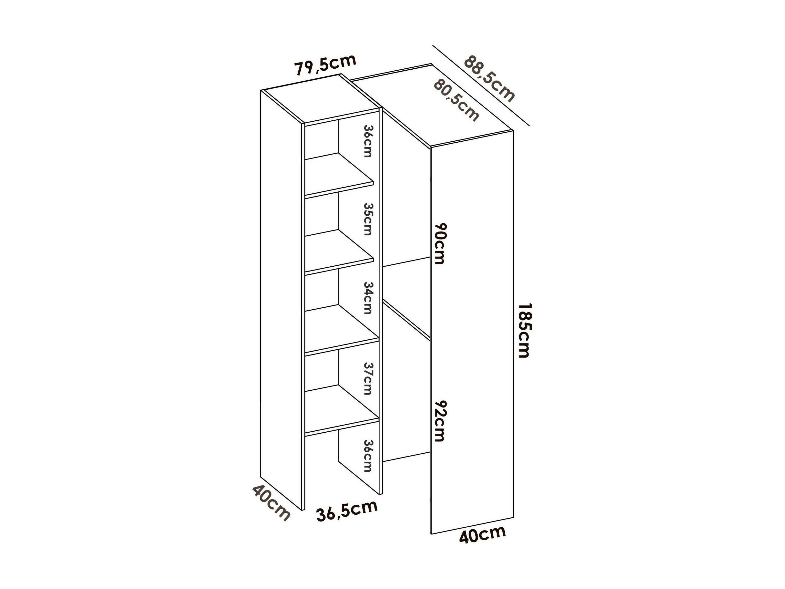 Armoire Bernina, Structure pour dressing d'angle, Cintre d'angle ouvert, 79x88h186 cm, Blanc