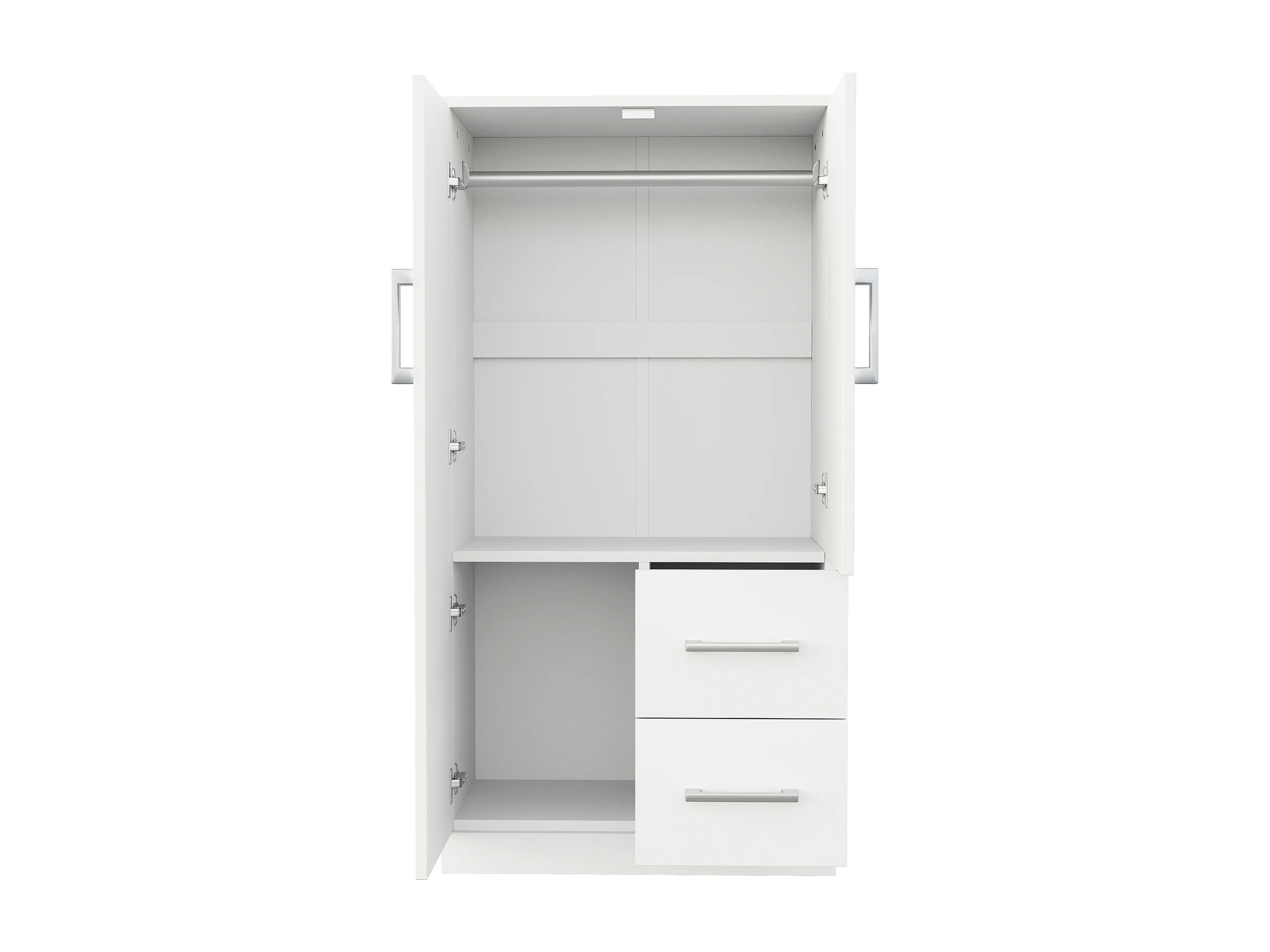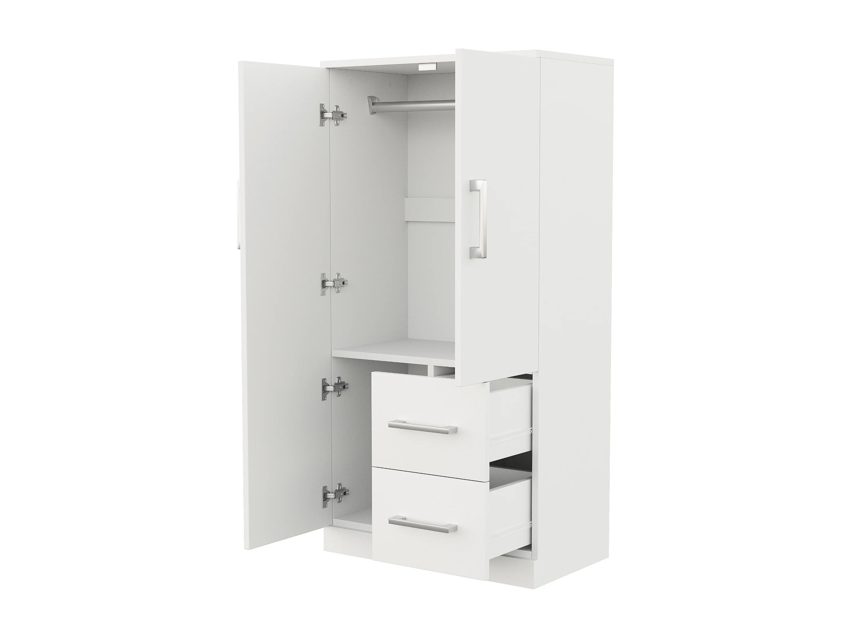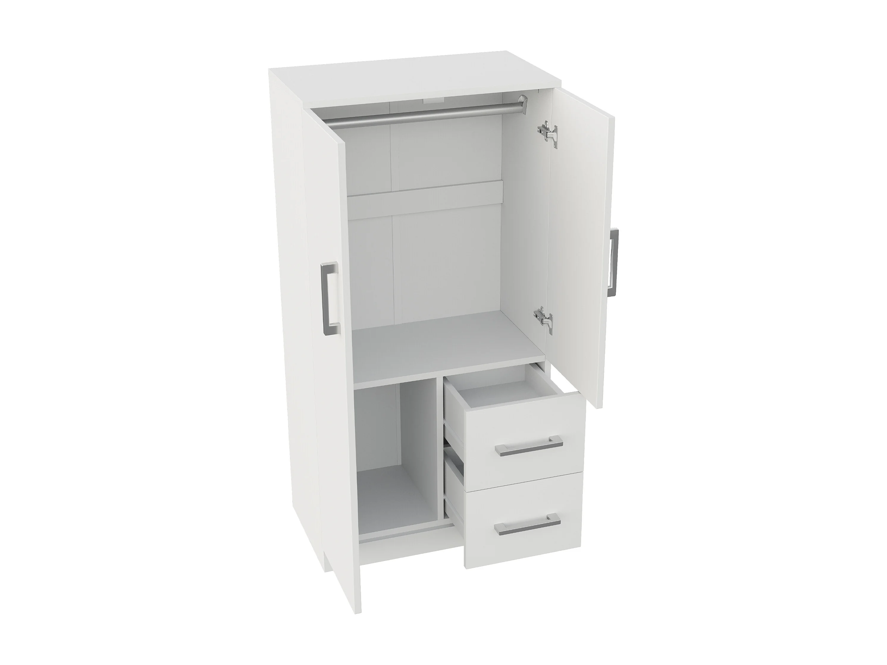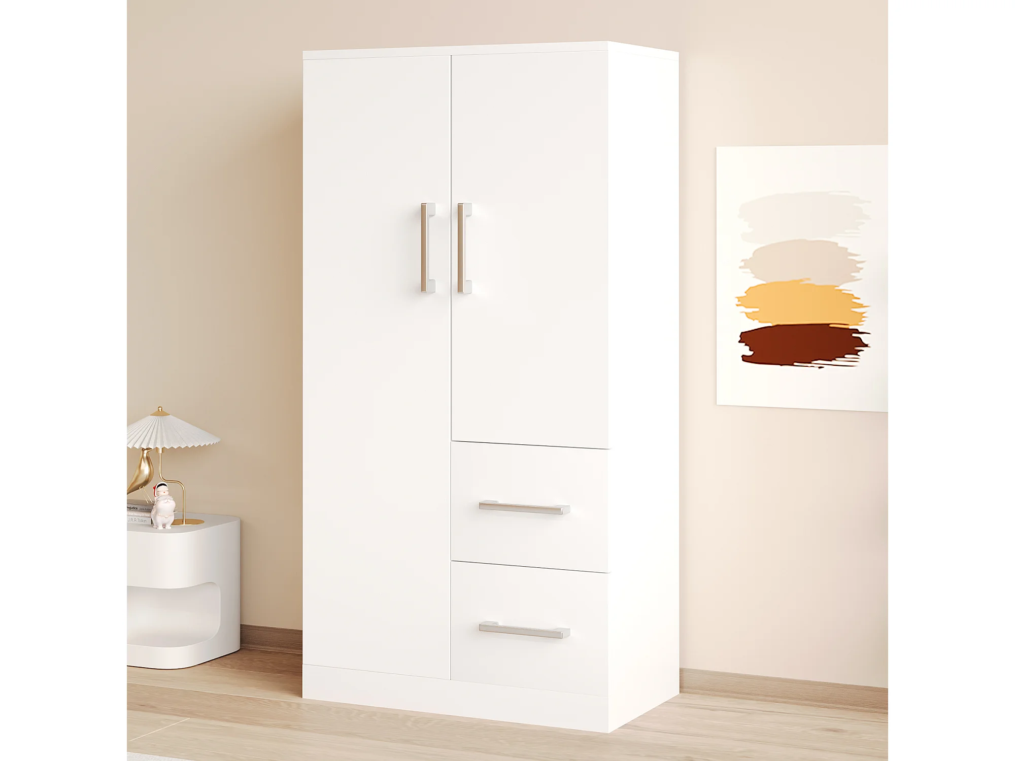 Armoire blanc - Porte manteau à 2 portes et 2 tiroirs - tringle