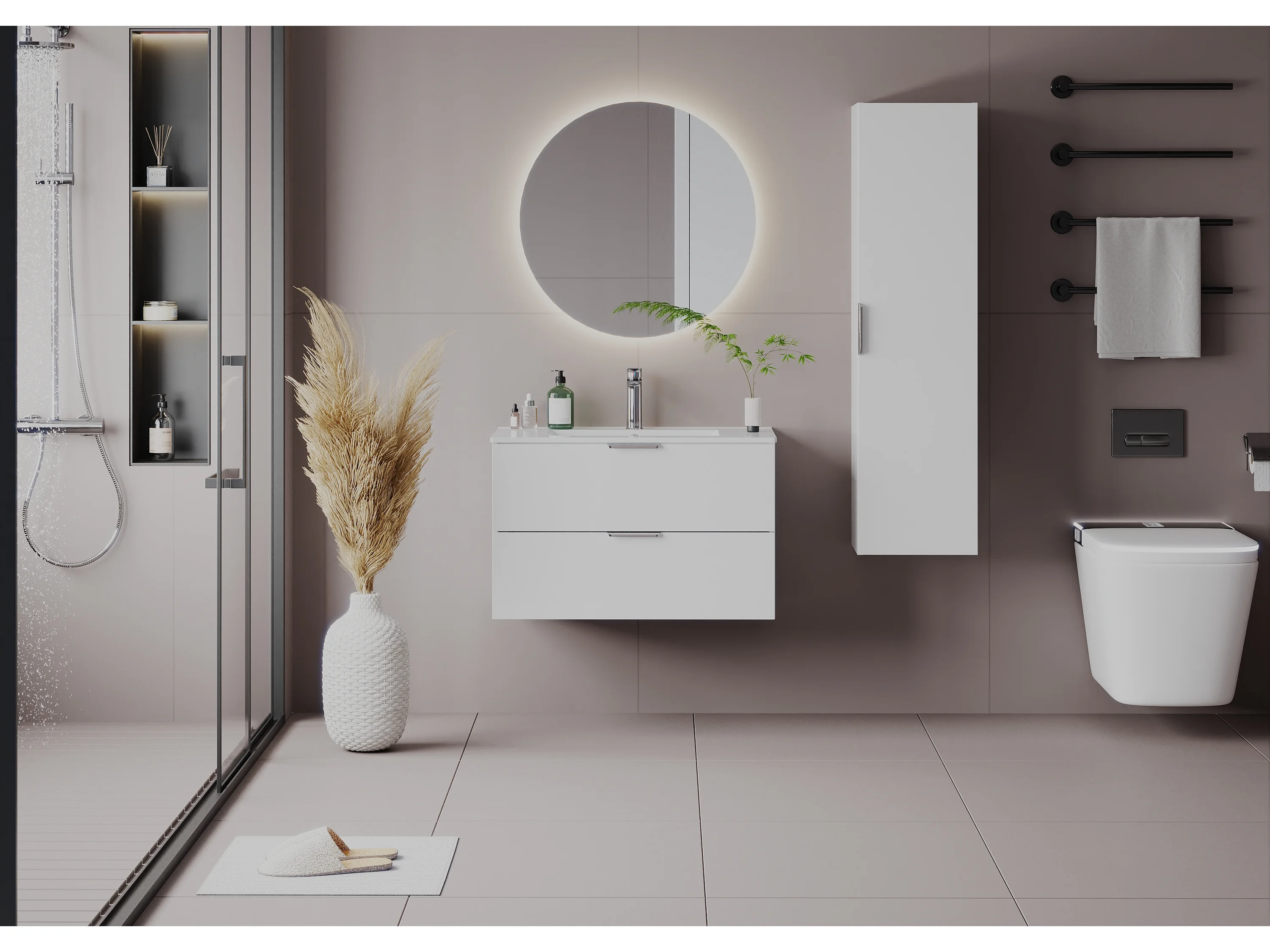 Armoire blanche pour salle de bain Colonne haute 1 porte Pile