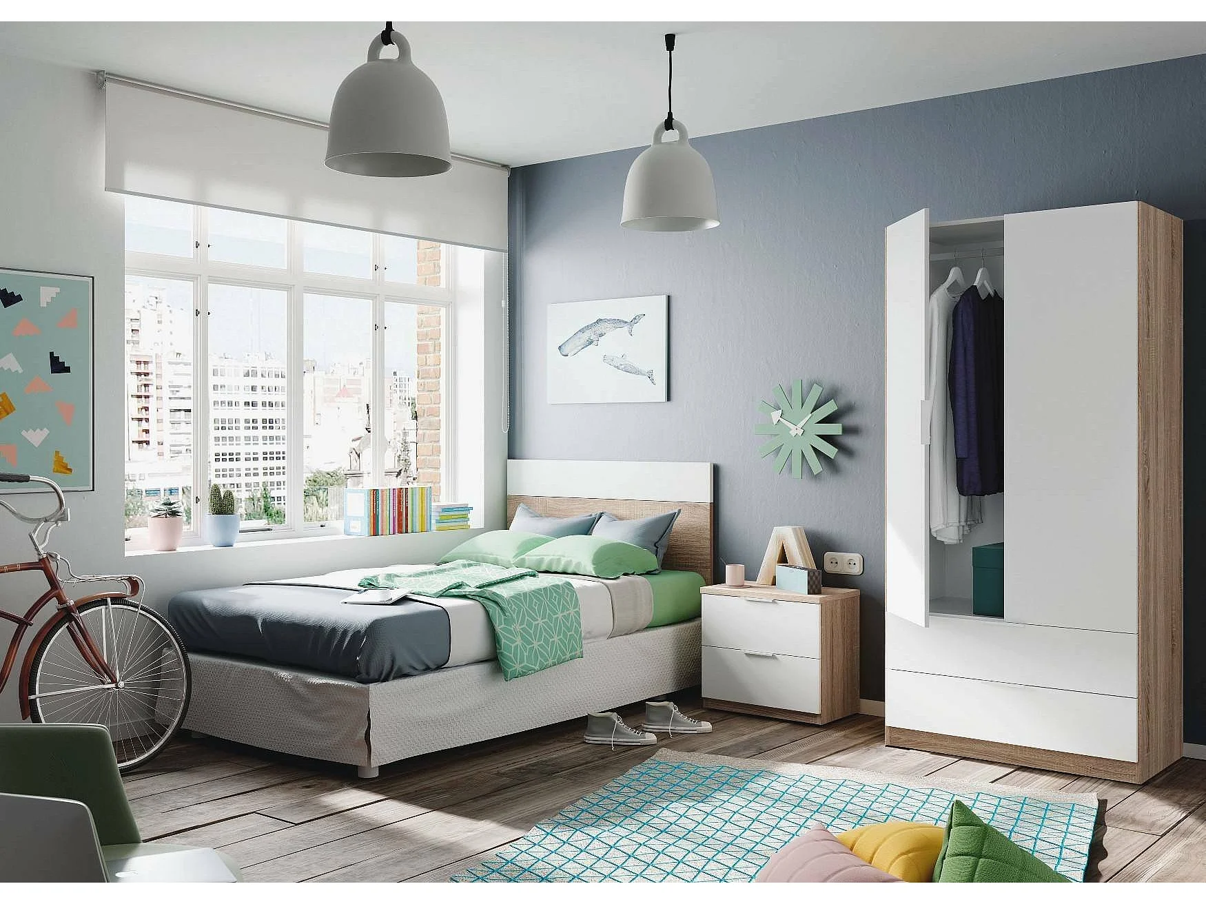 Armoire Burbank, Armoire de chambre avec 2 portes et 2 tiroirs, Armoire avec tringle à vêtements, 82x52h180 cm, Blanc et Chêne