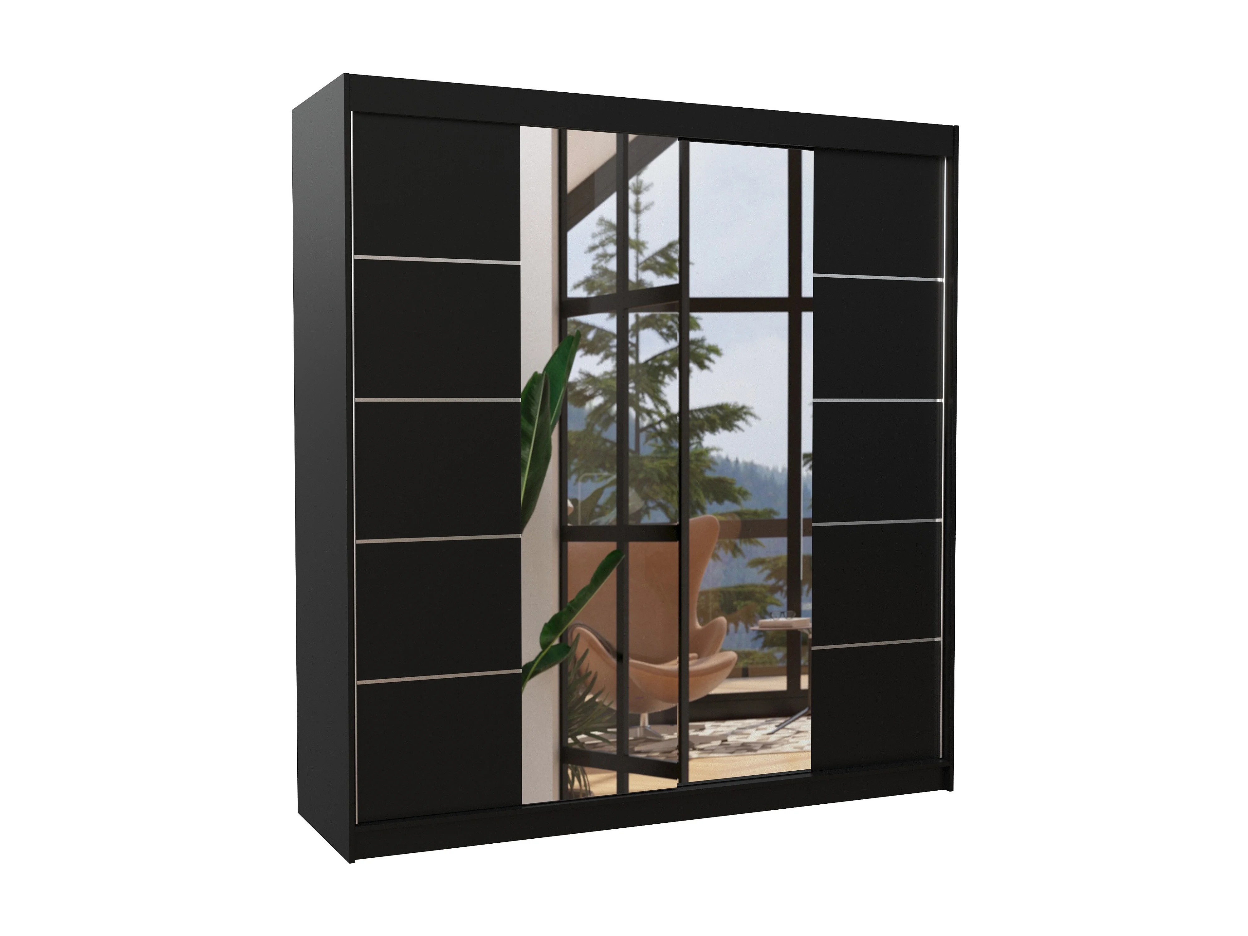 Armoire moderne chambre adulte 2 portes coulissantes 1 noir 1 miroir Davia 200cm