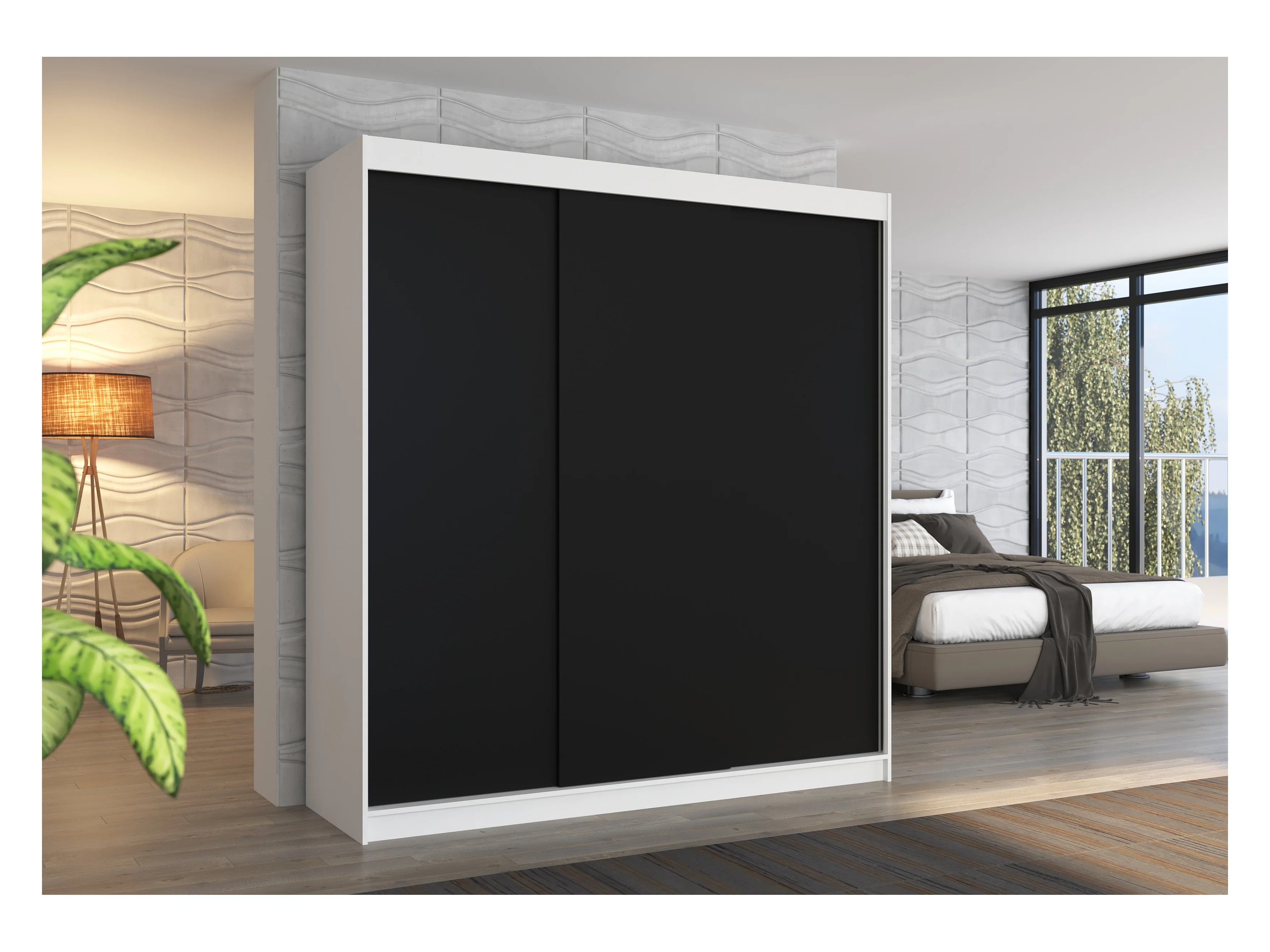 Armoire chambre adulte blanche et noir 2 portes coulissantes Yvona 200cm