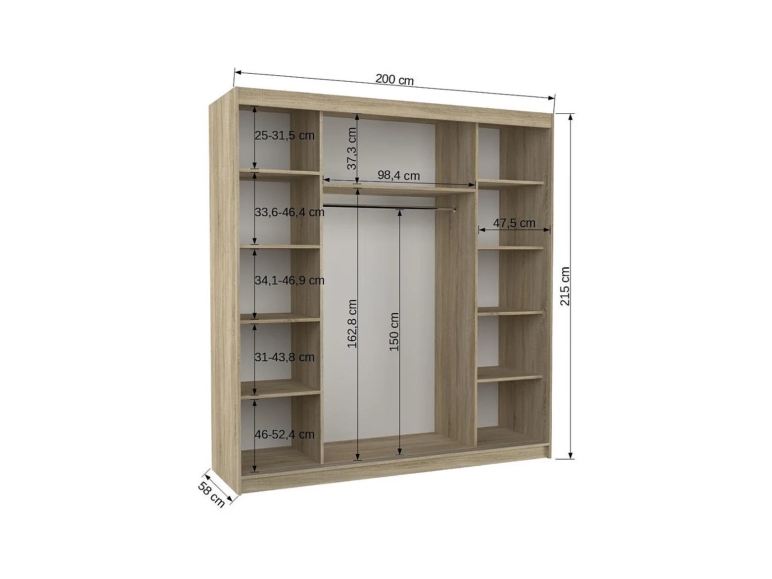 Armoire chambre adulte naturel et blanc 2 portes coulissantes Yvona 200cm