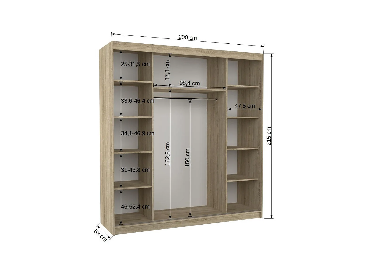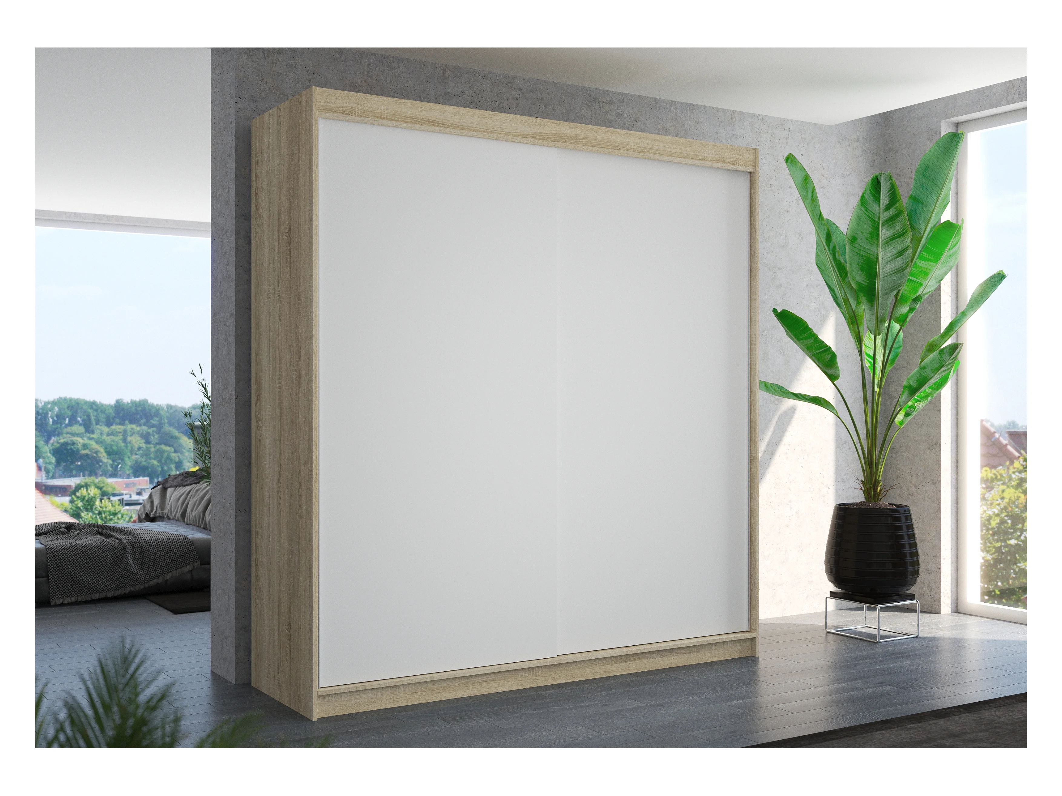 Armoire chambre adulte naturel et blanc 2 portes coulissantes Yvona 200cm