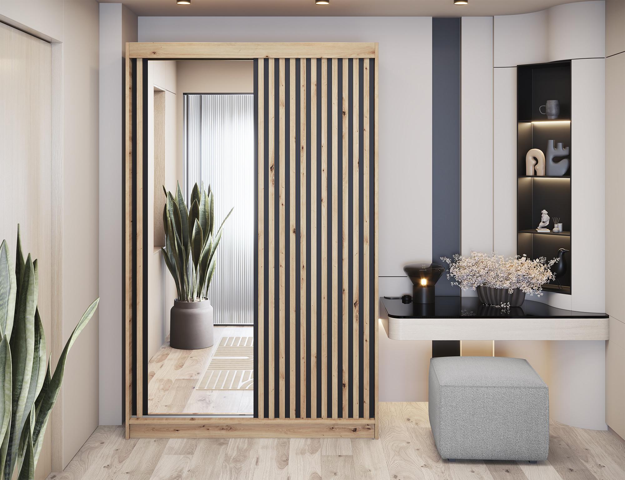 Armoire à portes coulissantes REVILA avec miroir – Élégance et fonctionnalité-Largeur 120 cm