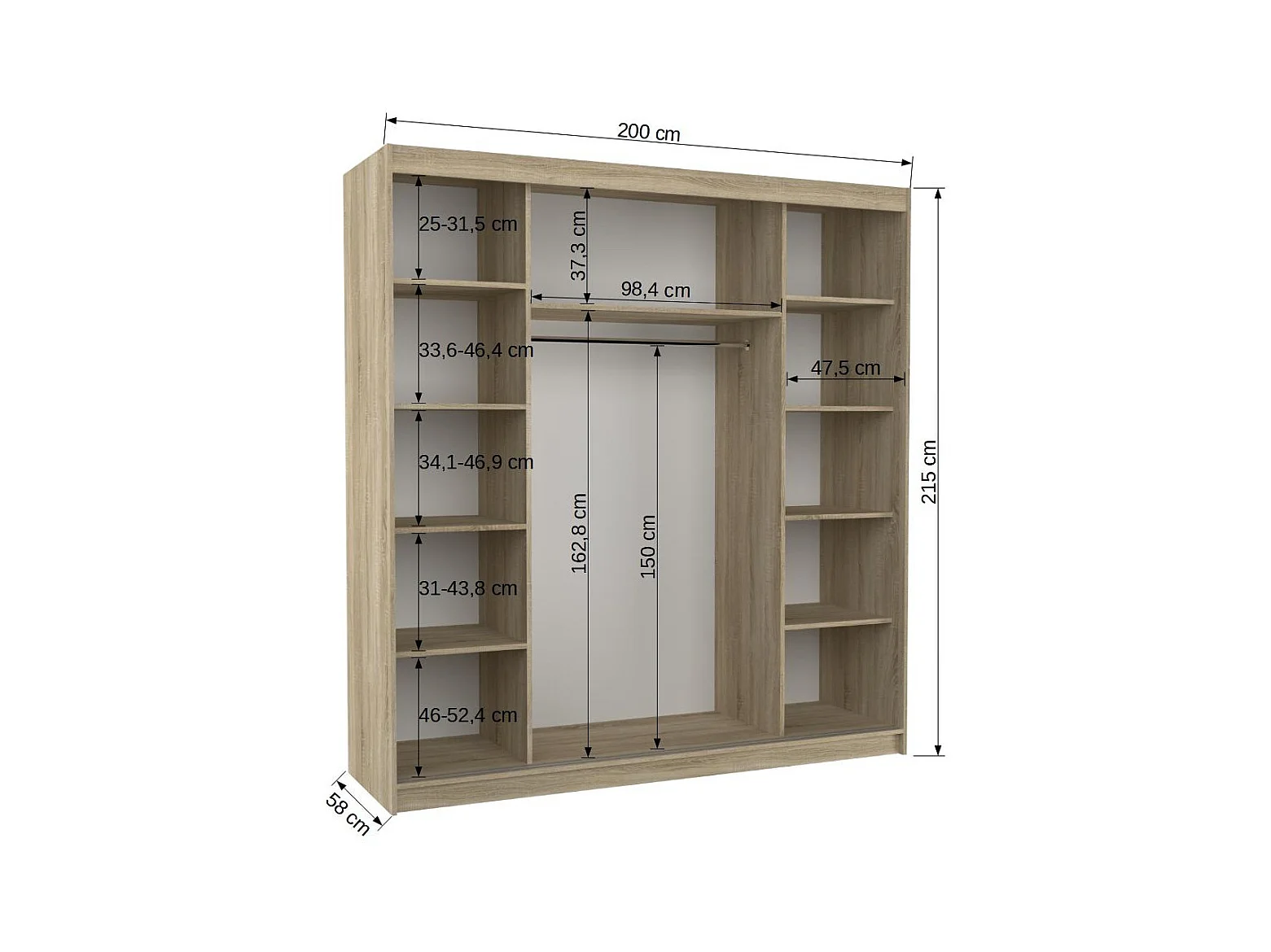 Armoire chambre adulte noir 2 portes coulissantes Terika 200cm