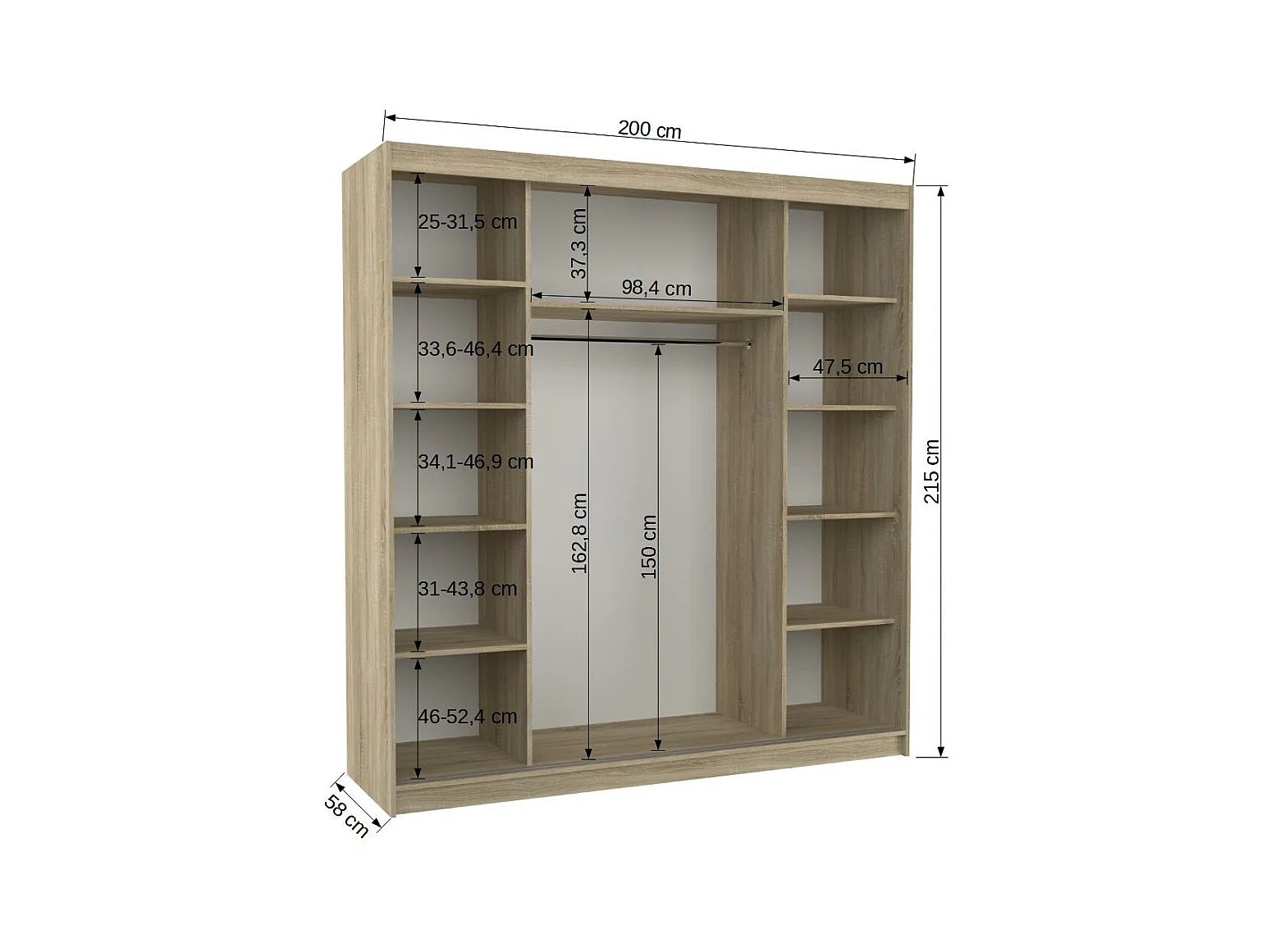 Armoire chambre adulte naturel et blanc 2 portes coulissantes Yvona 200cm