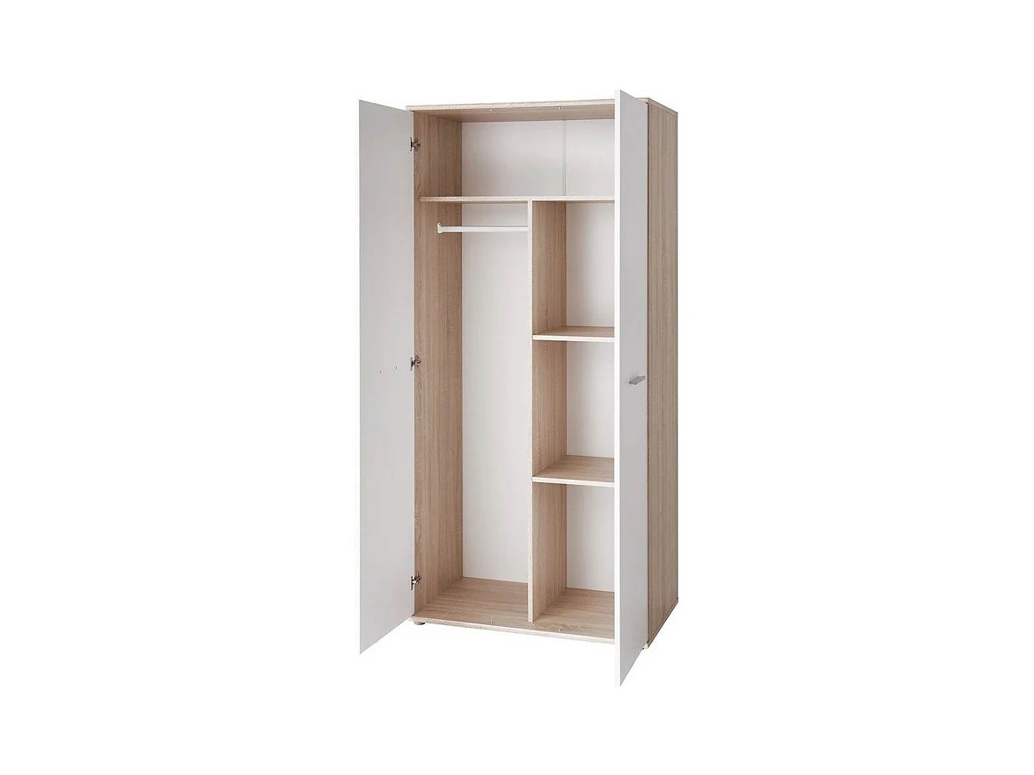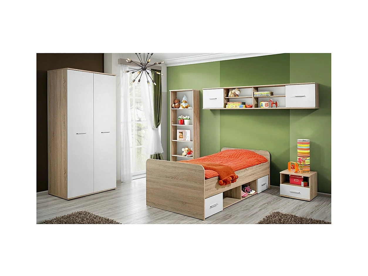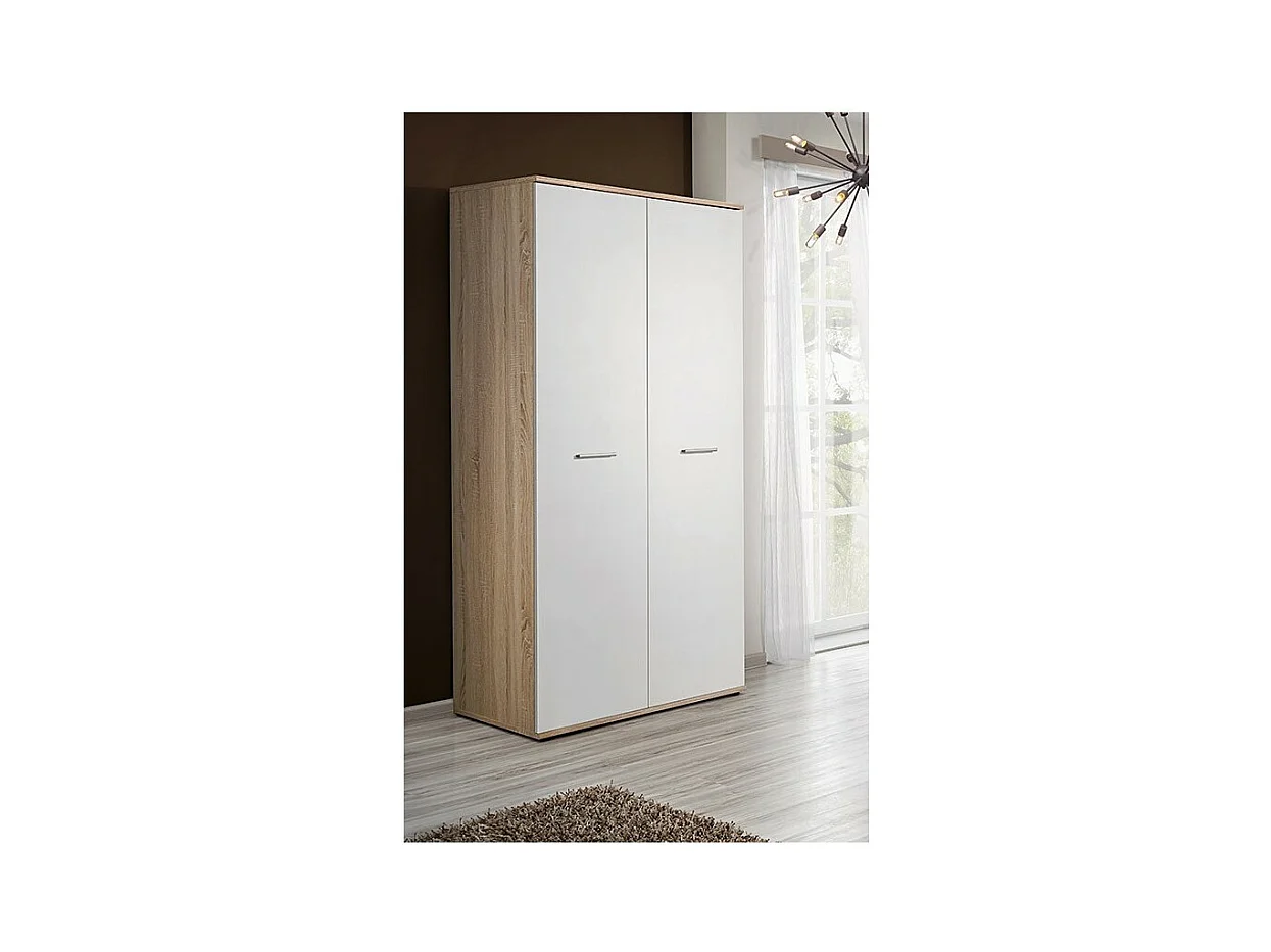 Armoire chambre d'enfant design coloris chêne et blanc avec 2 portes battantes collection DENVER.