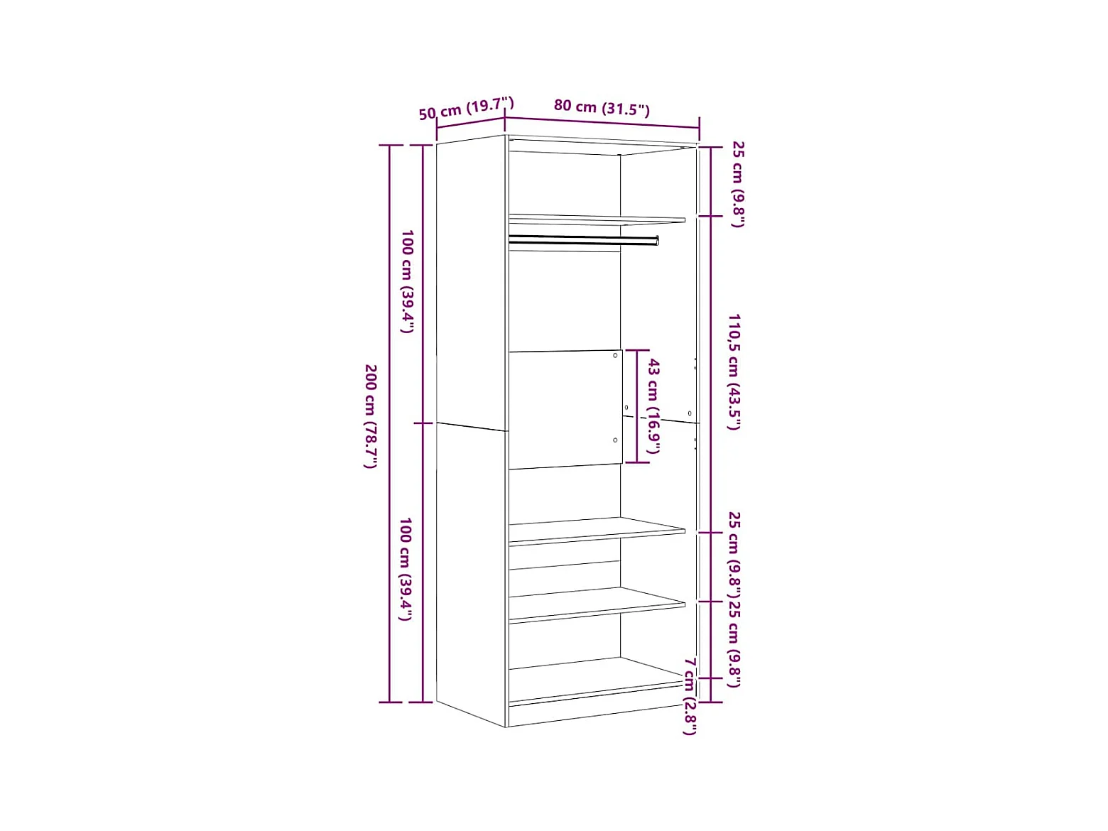 Armoire Chêne Noir 80 x 50 x 200 cm Bois d'ingénierie