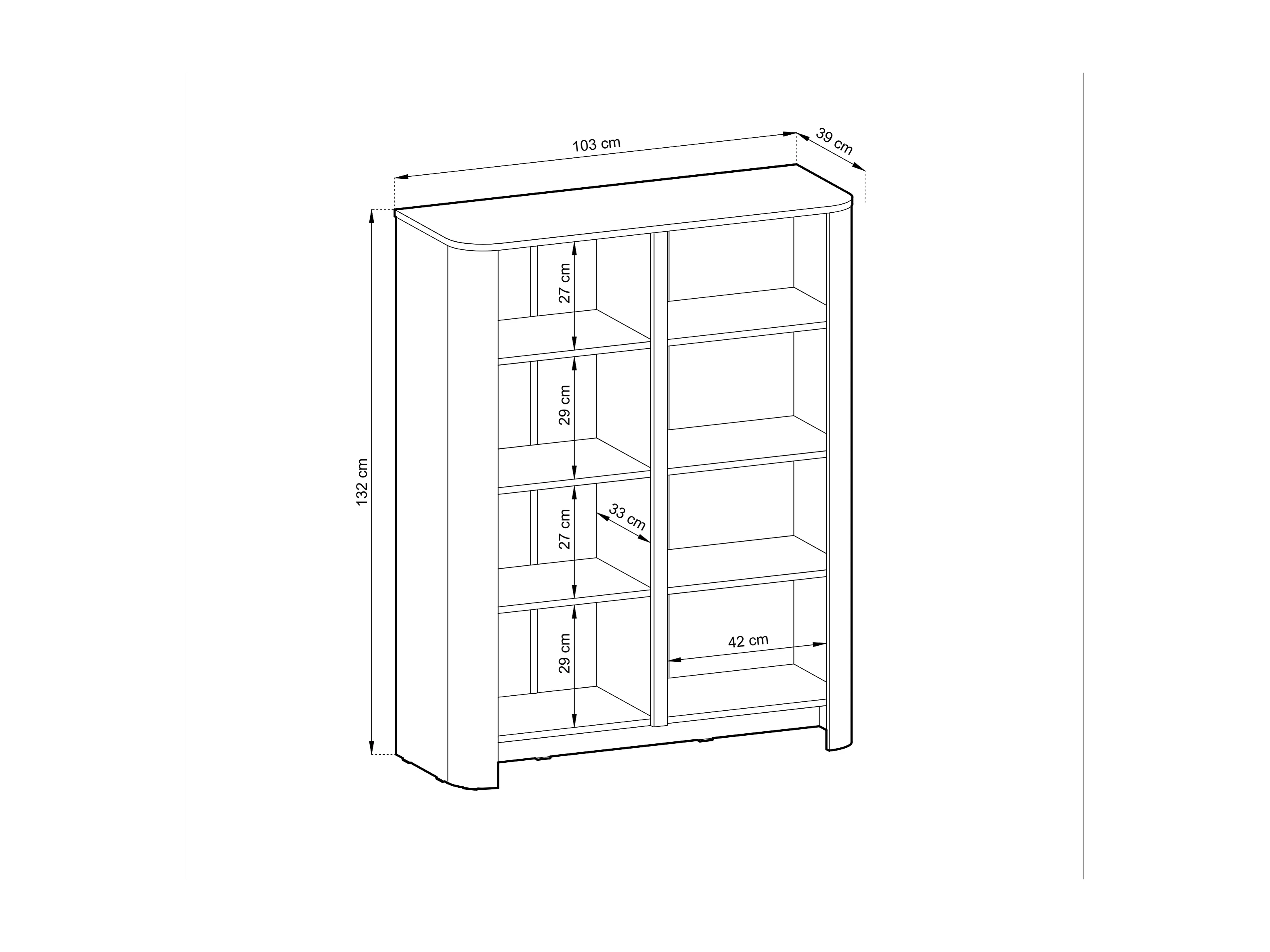 Buffet, Chêne Vicenza, 103 x 39 x 132 cm, Meuble moderne aux bords arrondis