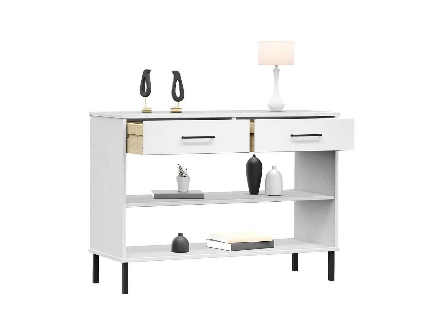 Armoire console avec pieds en métal Blanc Bois pin massif OSLO OFR78003 BonneVie Meuble