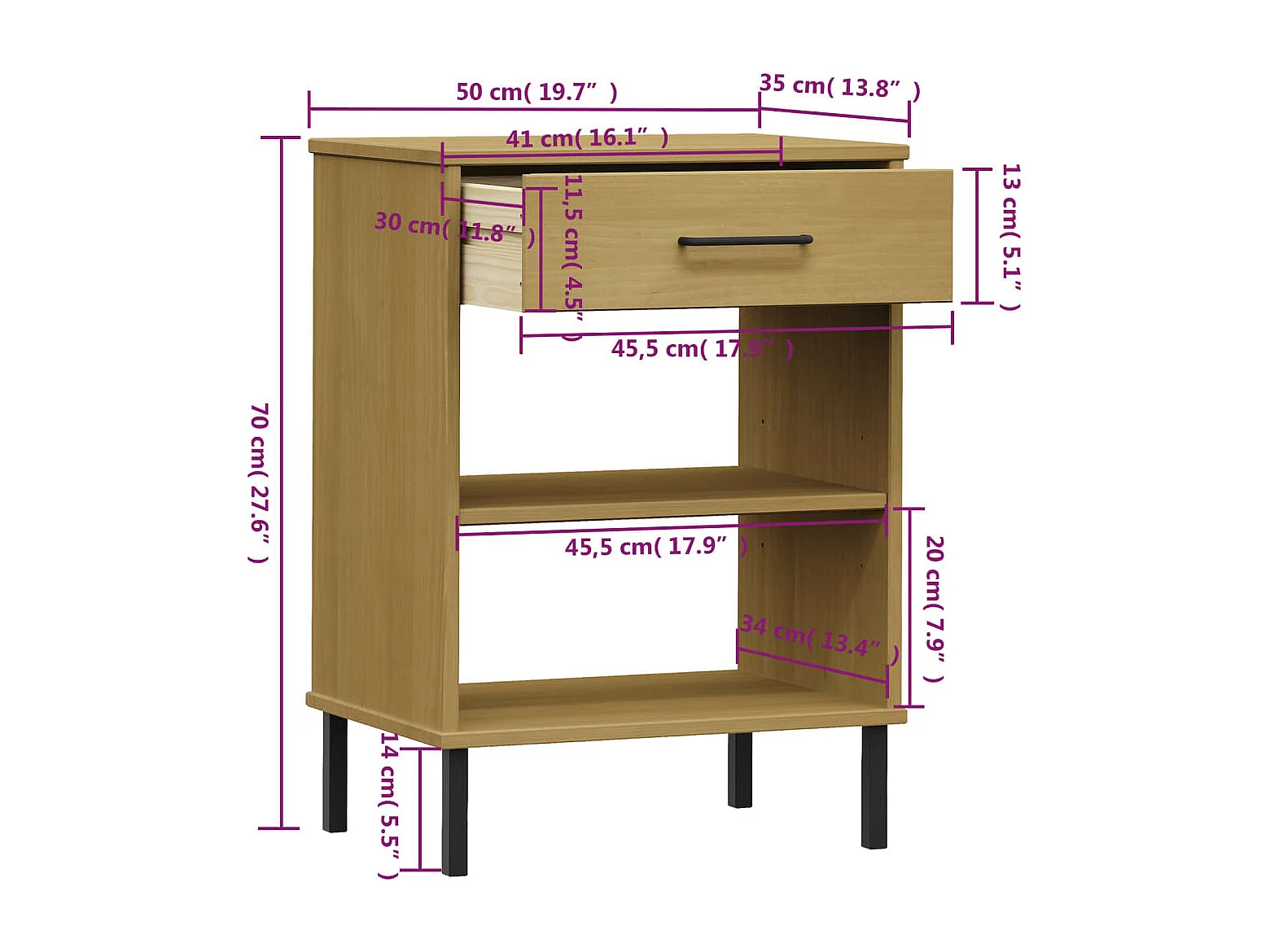 Armoire console avec pieds en métal Marron Bois pin massif OSLO