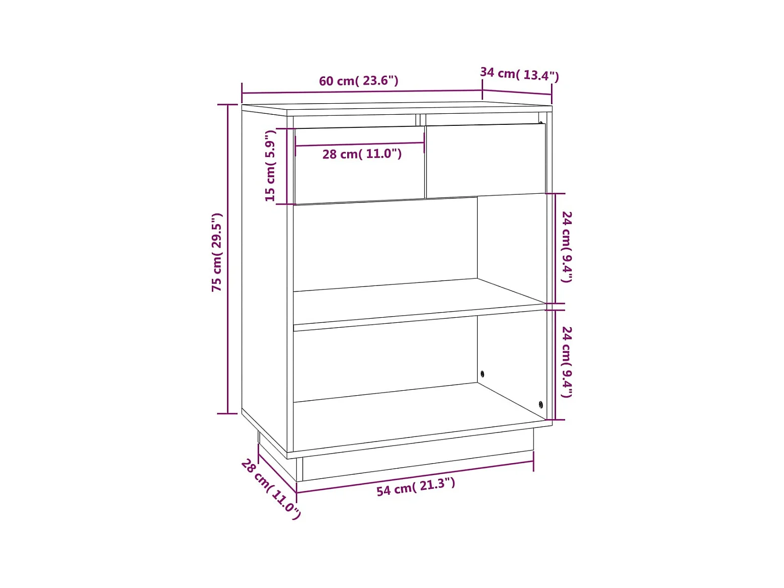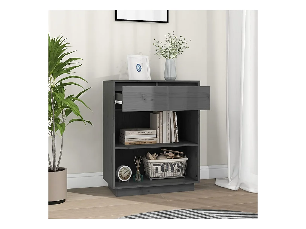 Buffet Gris 60x34x75 cm Bois massif de pin