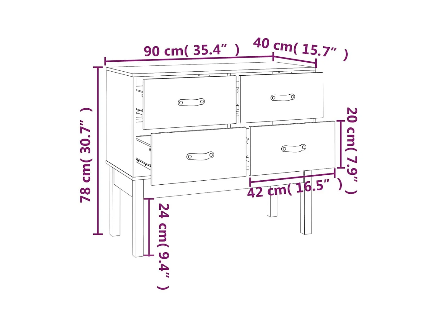 Armoire console Gris 90x40x78 cm Bois de pin solide