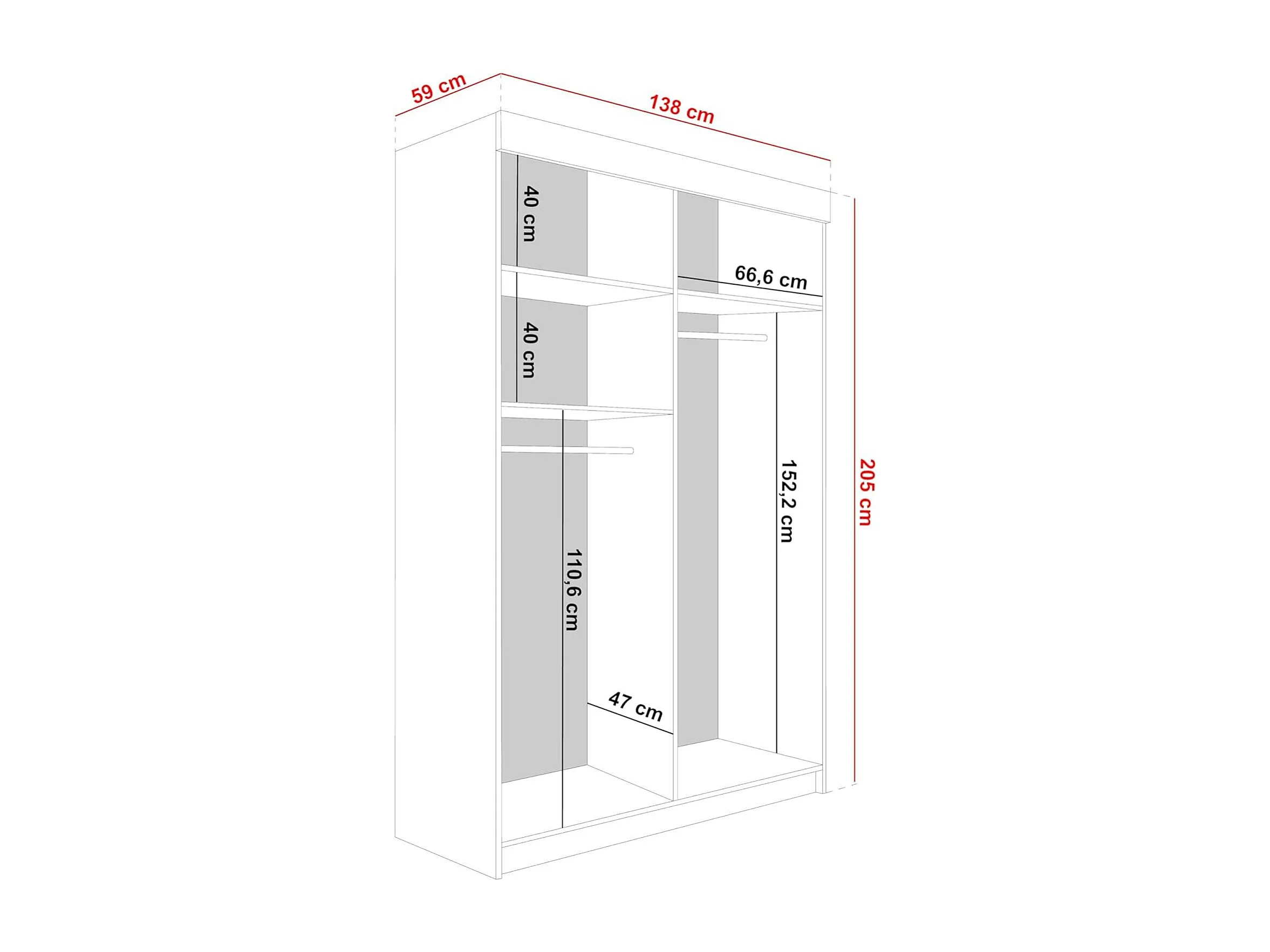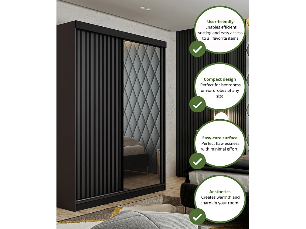Armoire coulissante avec miroir et lames MALANI 138 – Graphite + Chêne Craft Doré