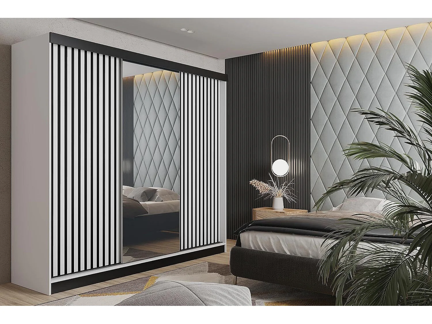Armoire coulissante avec miroir et lames MALANI 200 - Blanche
