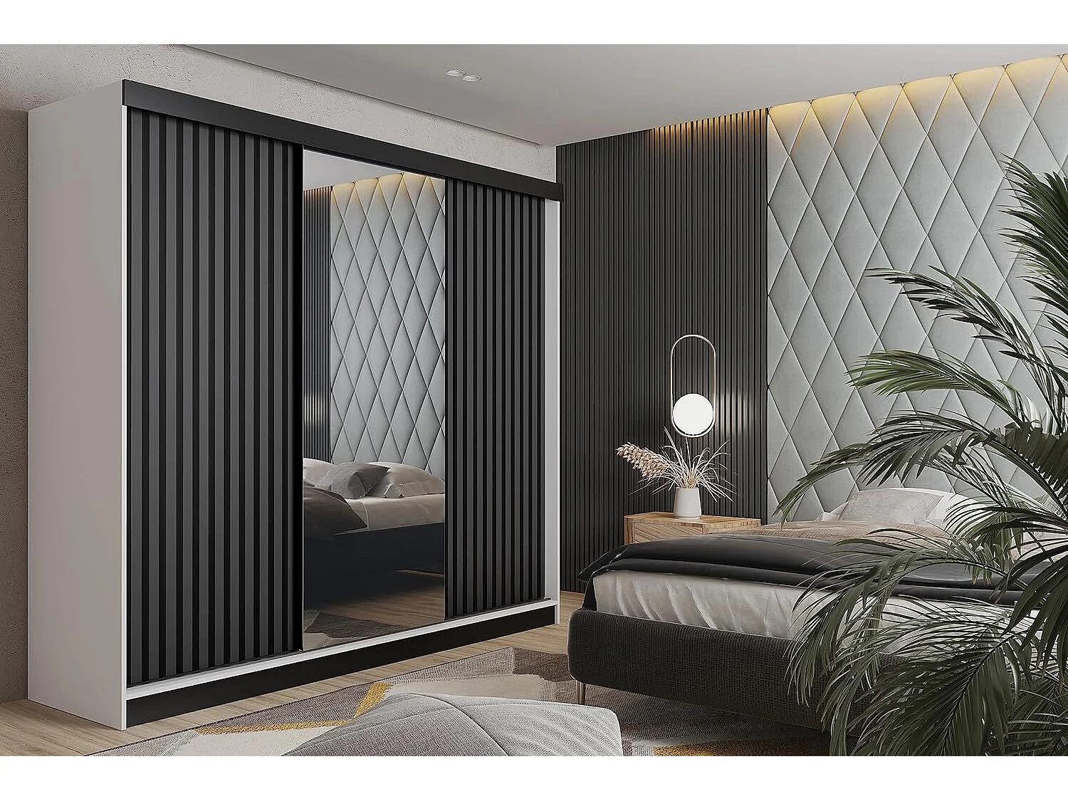 Armoire coulissante avec miroir et lames MALANI 200 - Blanche + Graphite