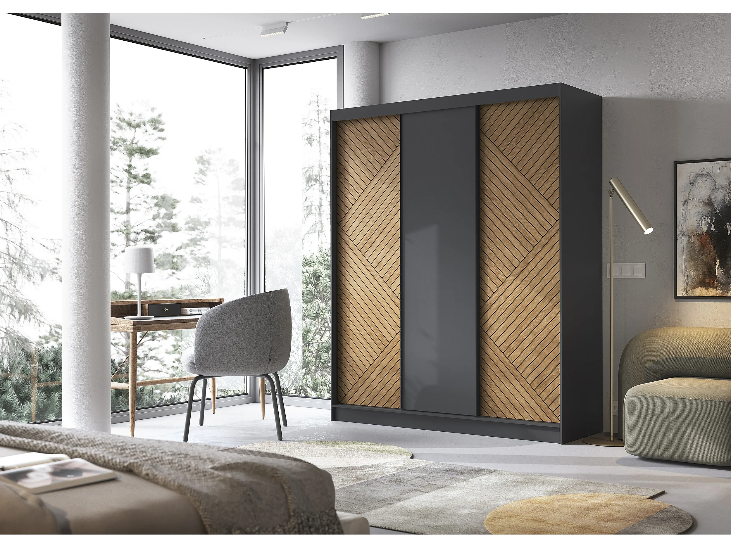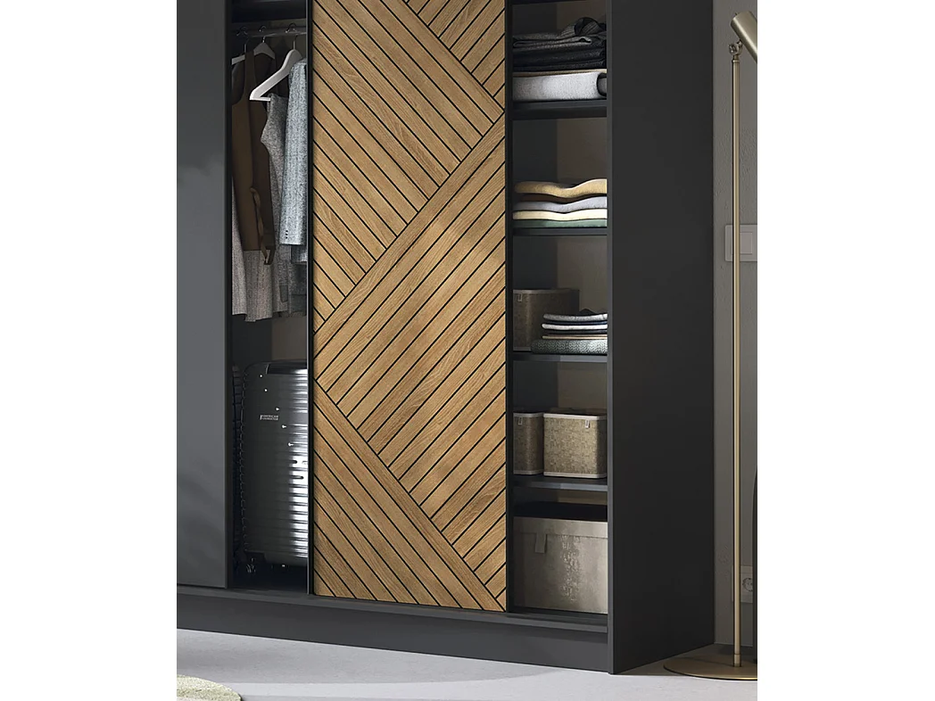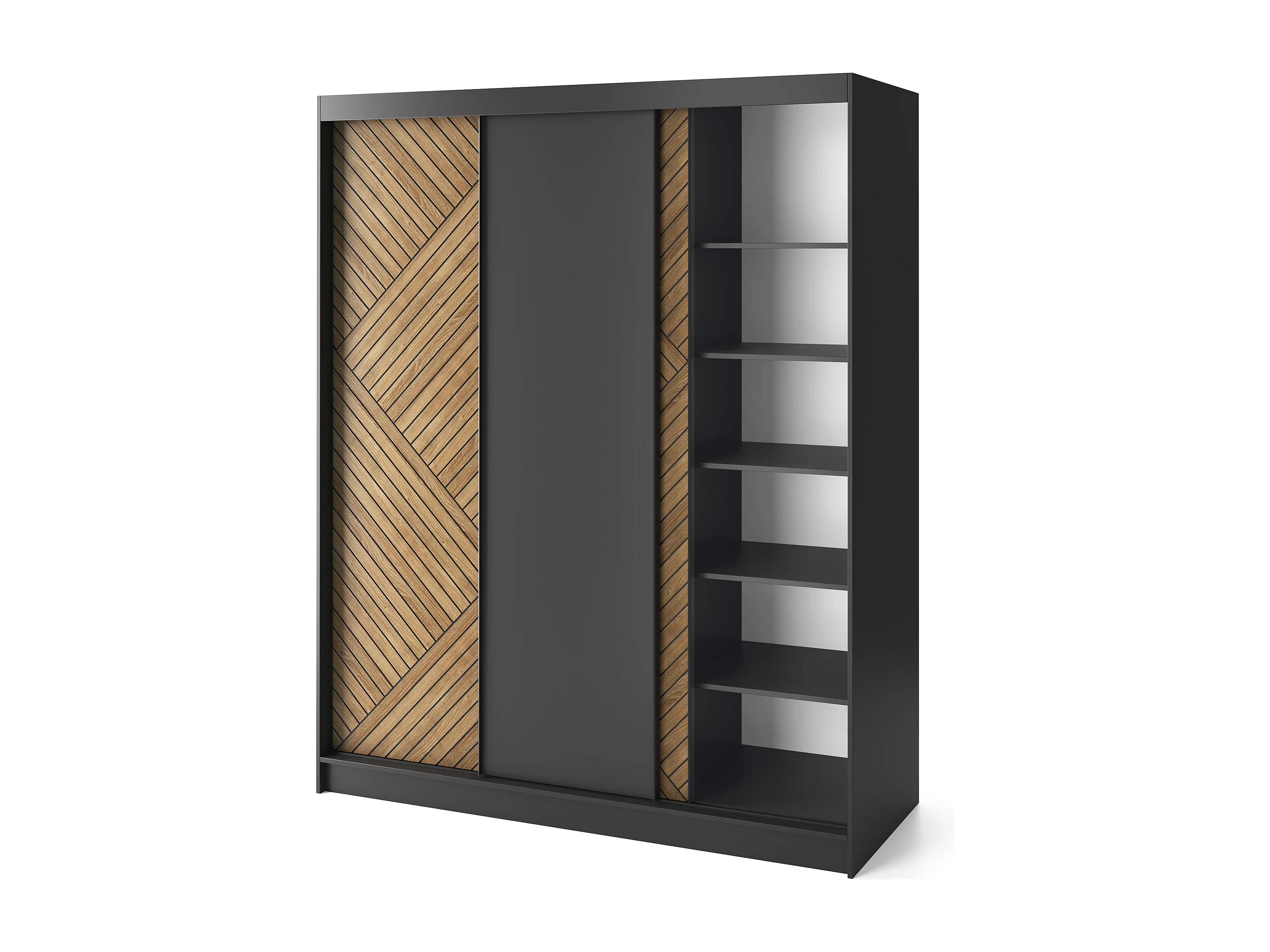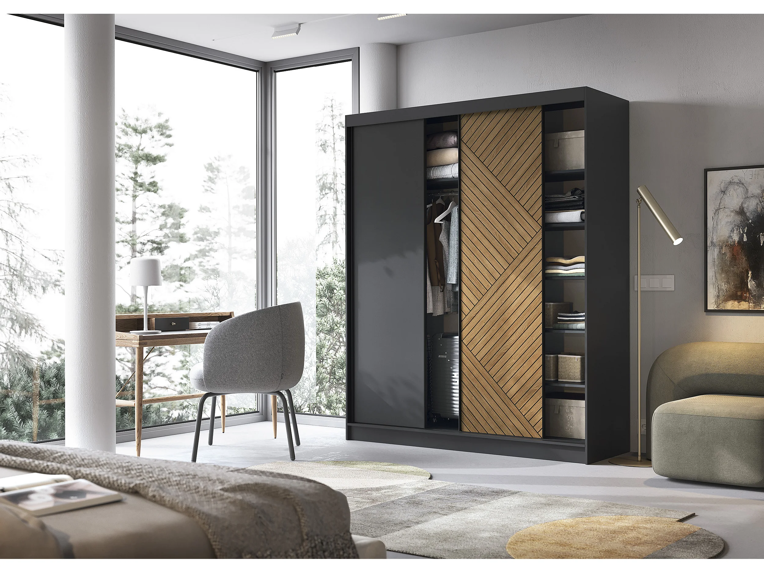 Armoire coulissante SOKAT – Chêne caramel & noir mat-Largeur 180 cm